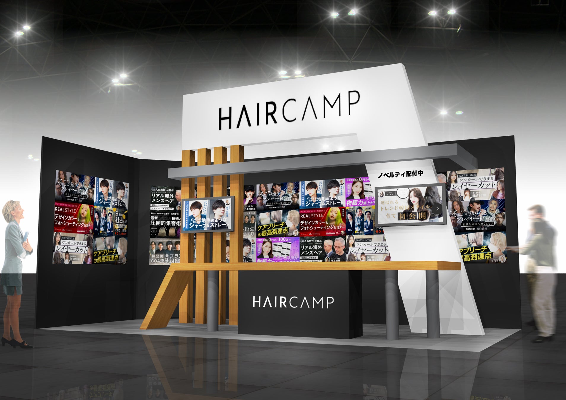 出展ブースでは、美容師向けオンライン学習サービスを展開するHAIRCAMP、サブスク動画見放題のプランを展開しているHAIRCAMP SCHOOLについての説明、そして来場者限定でノベルティー配布(先着順)を行います。