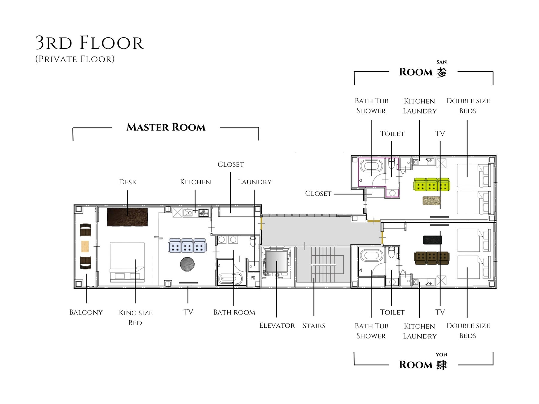 施設は各部屋に電子鍵があり、各部屋にキッチンとリビング、ベッド、バスルーム、ランドリーまであるので、日本のマンションのような構造にもなっています、そこで施設名をルートツーマンションと名付けた。
