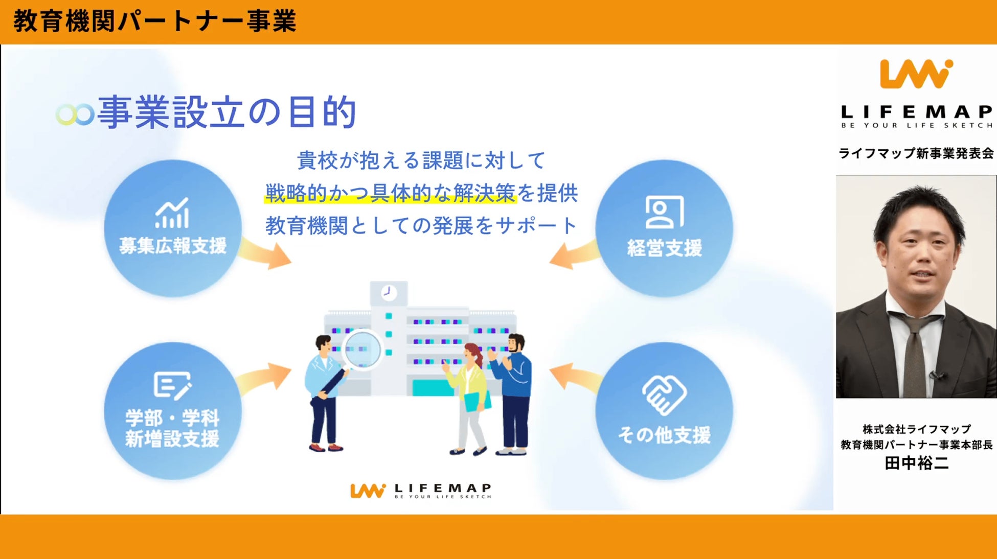 ”徹底的な高校生目線”で作る進学情報サイト「コレカラ進路.JP」を運営する株式会社ライフマップ(本社:東京都渋谷区、代表取締役:石川太一郎)は、新規事業「LINEマーケティング事業」および「教育機関パートナー事業」開始に伴い、2024年11月21日に新規事業発表ウェビナーを開催いたしました。