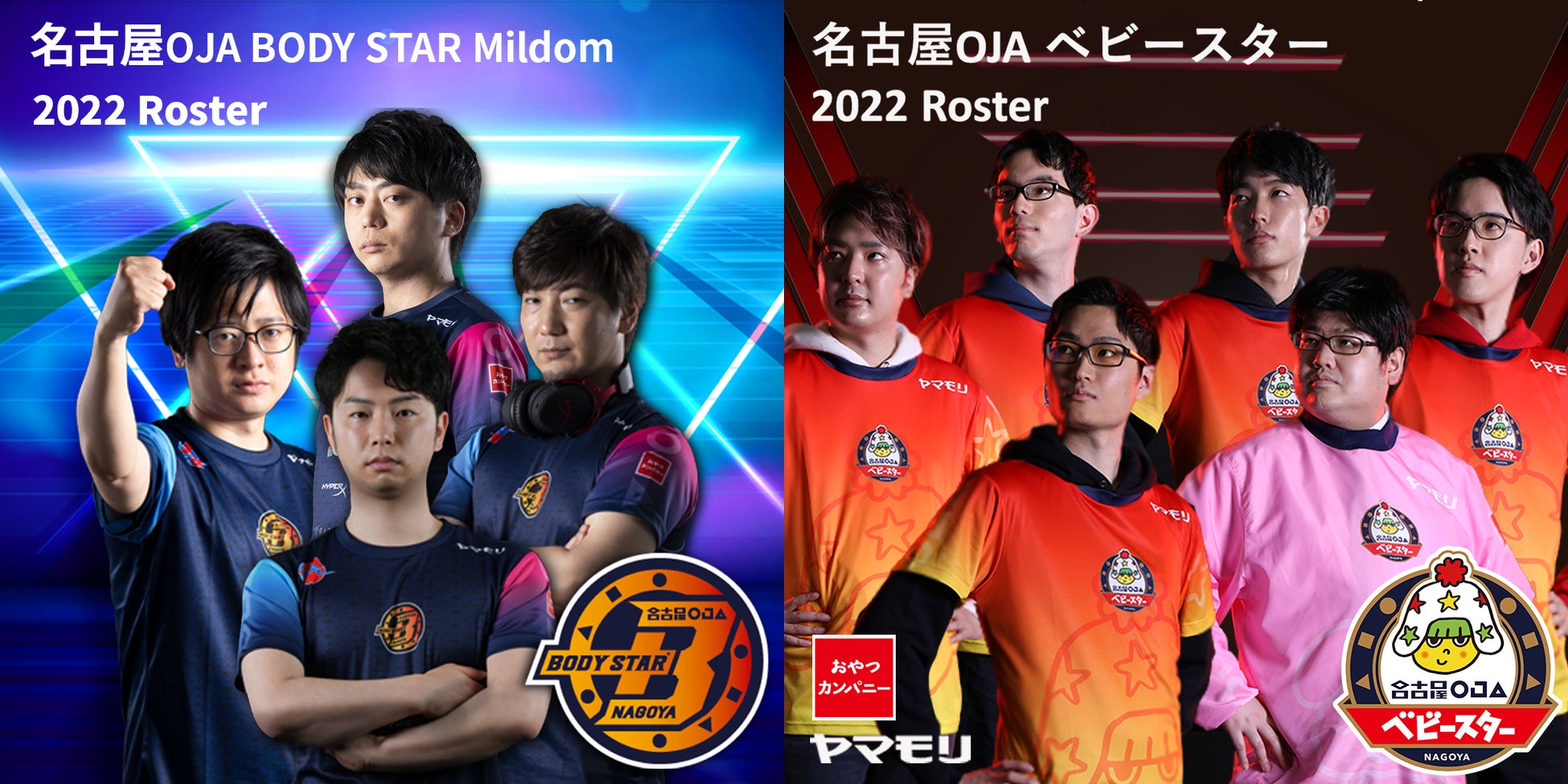 2016年eスポーツチームから開始し、2018年からカードゲーム部門である「名古屋OJA ベビースター」が、「RAGE Shadowverse Pro League」に参戦しています。2021年には、格闘ゲーム部門である「名古屋OJA BODY STAR」が株式会社NTTドコモと株式会社カプコンが共催する「ストリートファイターリーグ: Pro-JP 2021」に参戦しています。