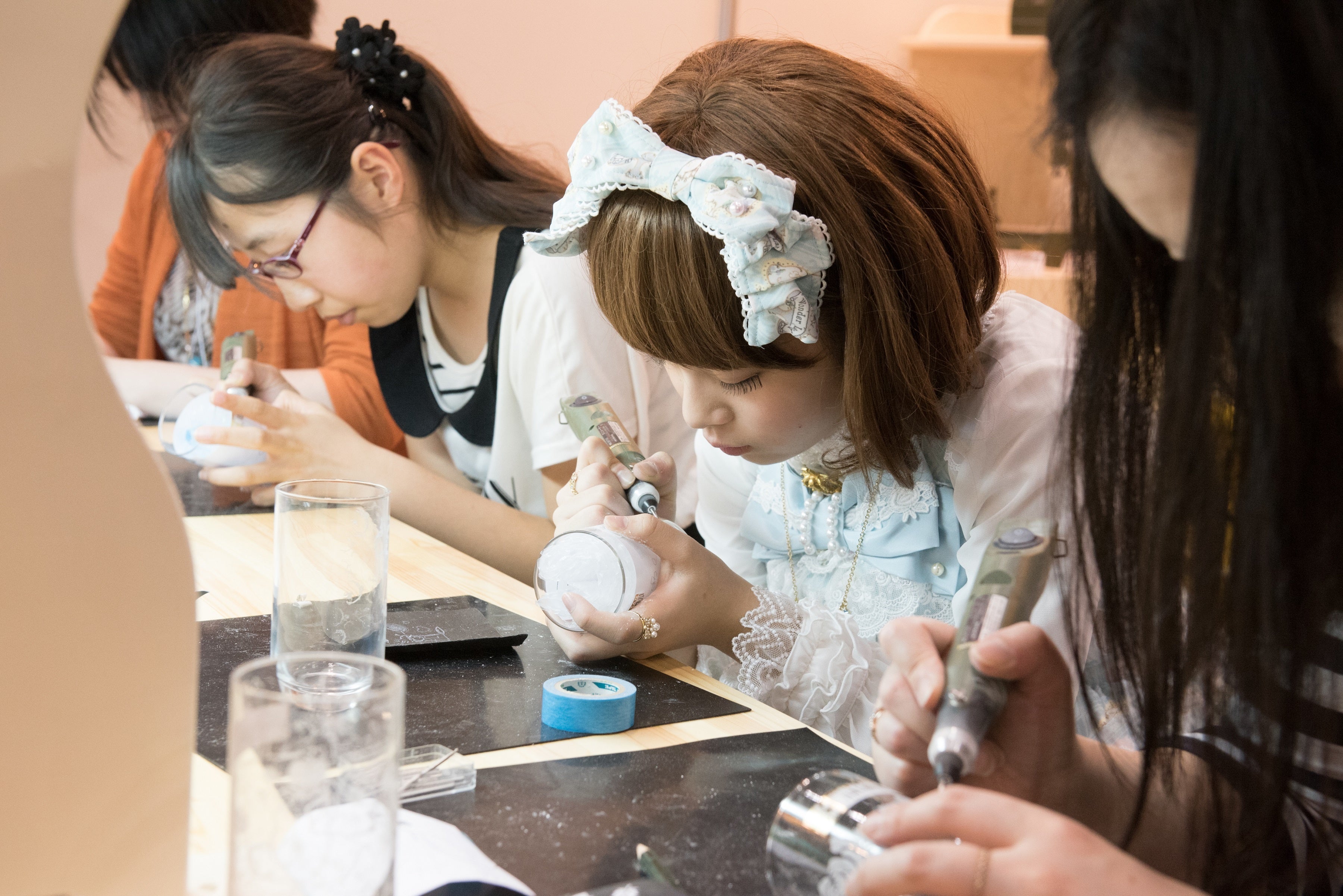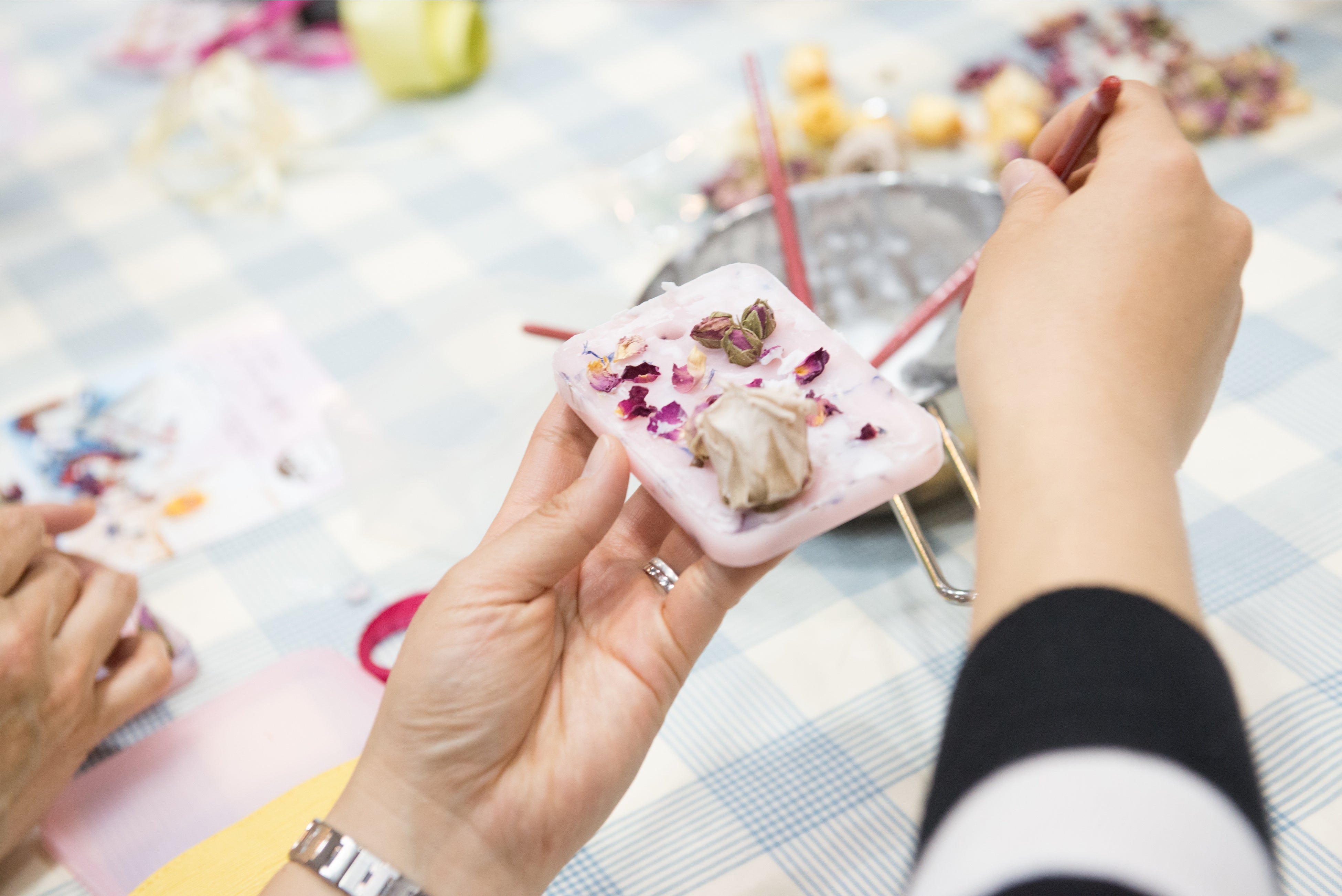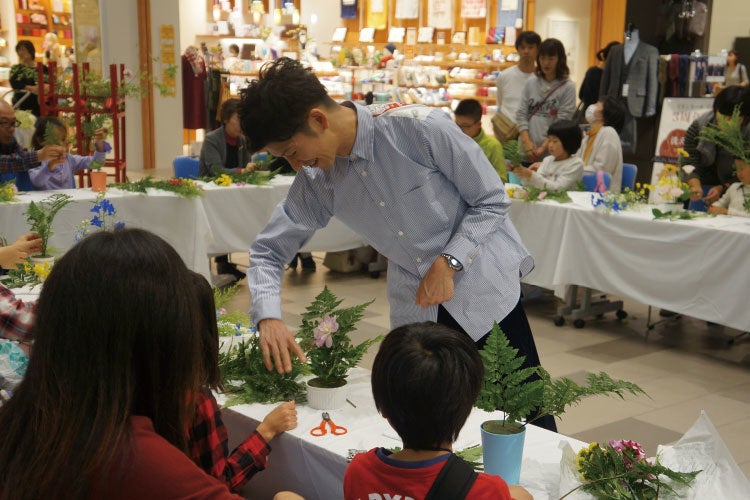 ブース内の華道講師によるワークショップでは、手作りした花器と生けた花をお持ち帰り頂けます。