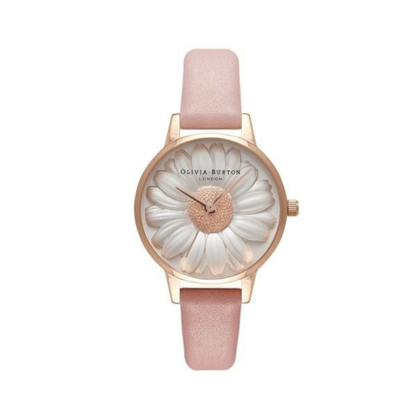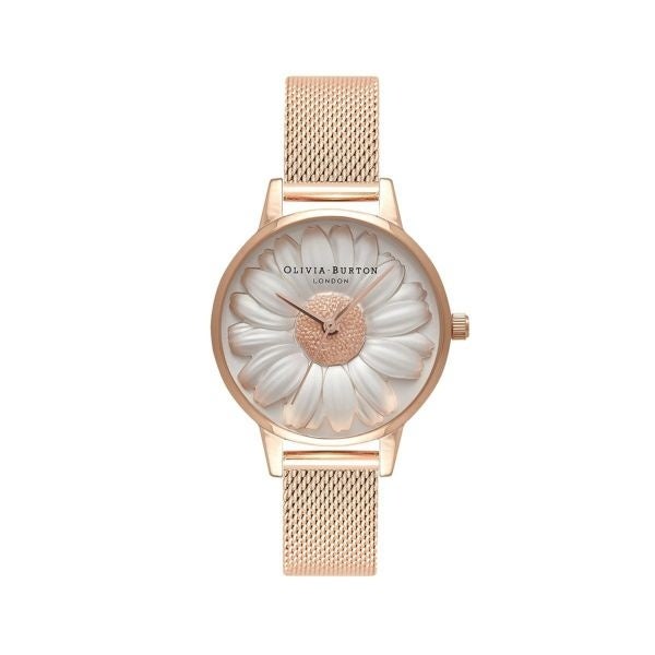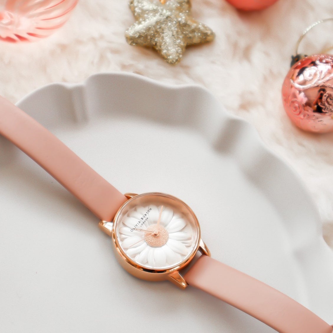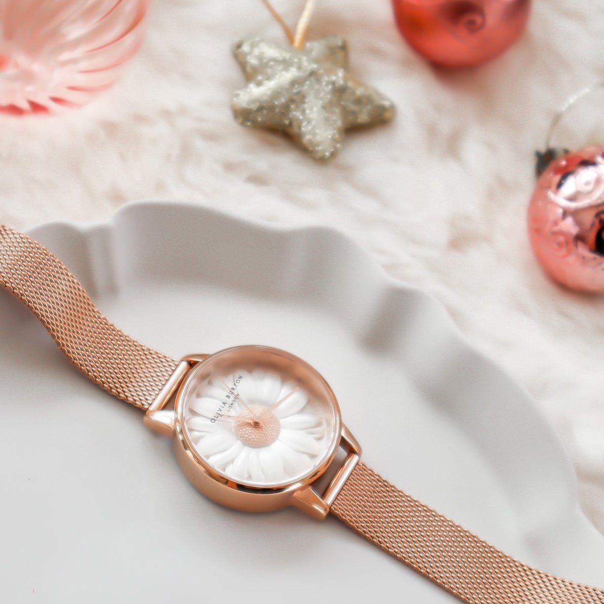 『3Dデイジー』は、文字盤いっぱいにデザインされた立体的なデイジーの花モチーフが特徴の腕時計で、数あるオリビア・バートンの中でも絶大な人気を誇るコレクション。今回のセットは、ローズゴールドのメッシュベルトと、くすみピンクのレザーベルトの替えベルトが付いた、karendo限定発売される特別カラーモデル。ベルトがシーンに合わせて付け替えが出来て、それぞれのベルトでワンランク上の大人っぽさを演出。華やかなパーティーシーンなどにも重宝いたします。
