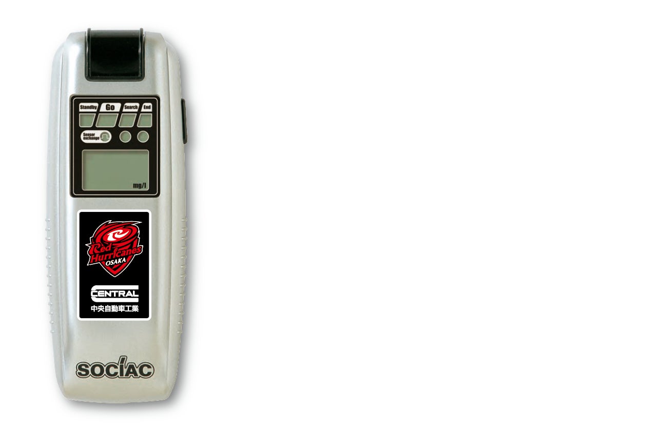 中央自動車工業は、CPCプレミアムコーティングシリーズ等の自動車用ボディコーティングをはじめとしたケミカル商材のほか、アルコール検知器「ソシアック」シリーズの開発・販売を手がけていることから、スポンサーマッチ当日、会場にて『レッハリ×CENTRALロゴ入り「ソシアック」1,000台を配布するキャンペーン』を実施。11月から自転車の酒気帯び運転の罰則が強化されたことを受け、「一家に一台アルコール検知器」をキーワードにレッドハリケーンズ大阪の皆さんと共に飲酒運転撲滅を訴えます。