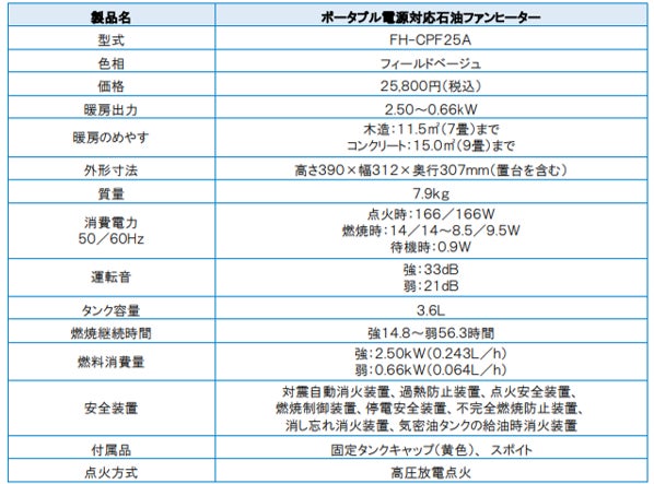 ■ポータブル電源対応石油ファンヒーター FH-CPF25A (3月29日(金)12時 先行予約受付開始)