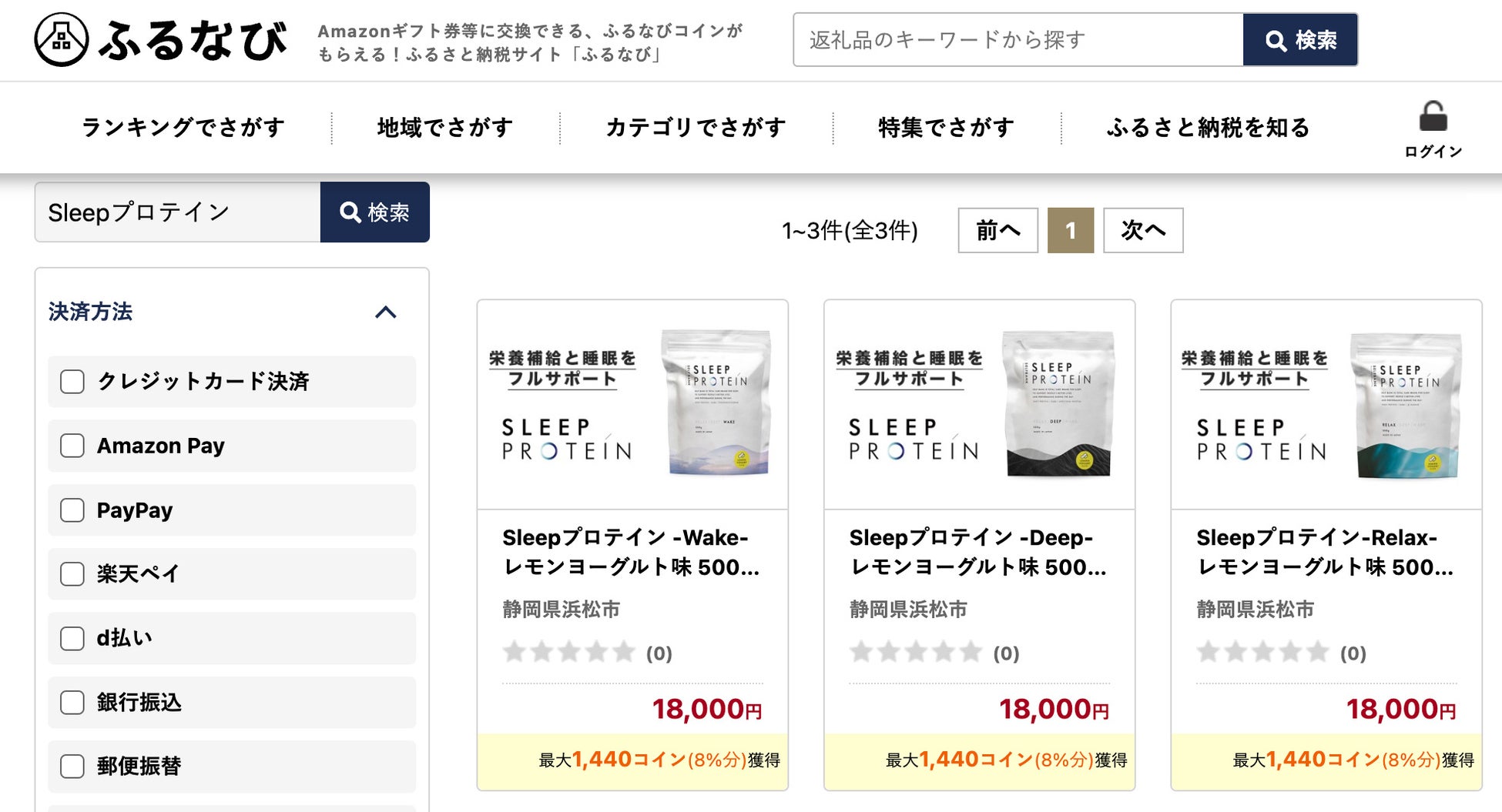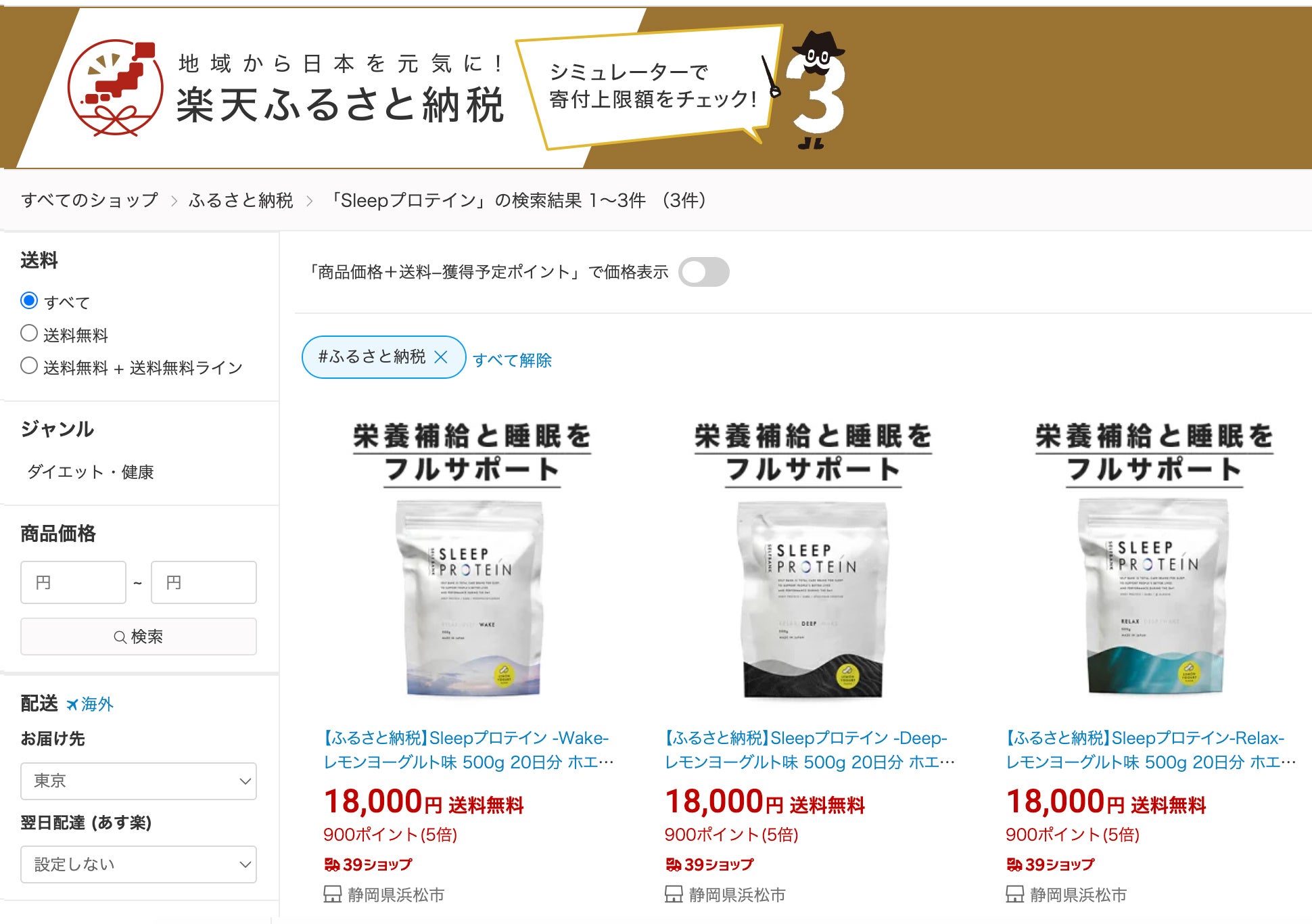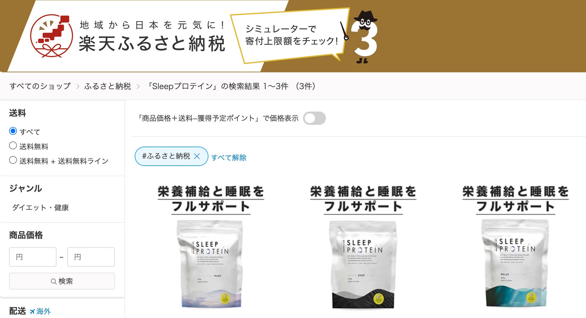 楽天ふるさと納税・ふるさとチョイスなどで、Sleepプロテインの掲載が開始しました