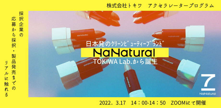 また、「7NaNatural」一般発売にあたって2022年3月17日に無料ウェビナーを開催します。当ウェビナーでは、アクセラレータープログラム「TOKIWA Lab.」の説明や、採択企業である株式会社メディアジーンの中村 圭氏,、黒飛様紗代子氏の2名による応募から採択、そしてプログラムを使った製品開発・販売開始までの秘話などを、主催者であるTOKIWA Lab代表(株式会社トキワ代表取締役社長)の金井 博之と振り返りながらトークセッションを行います。