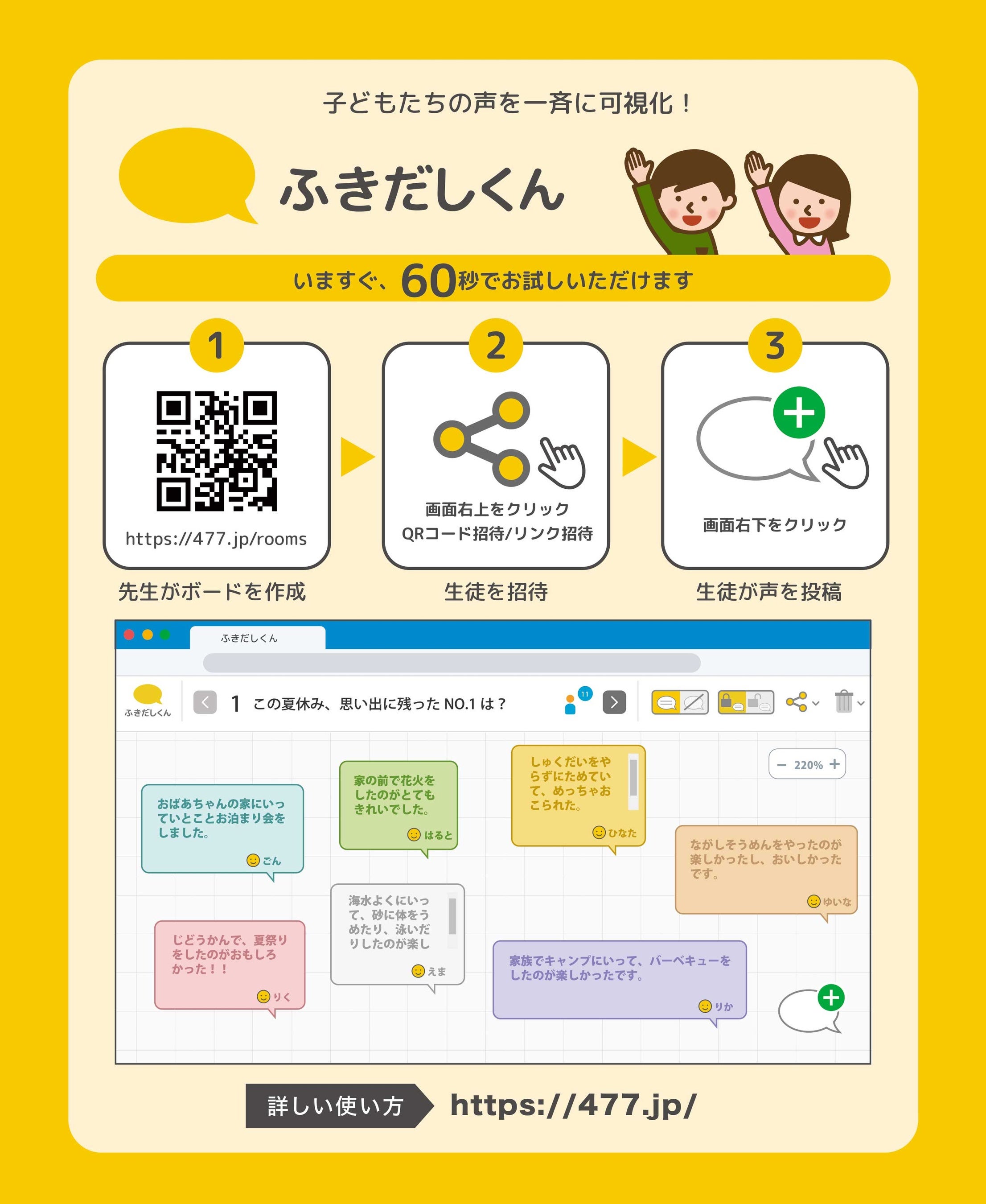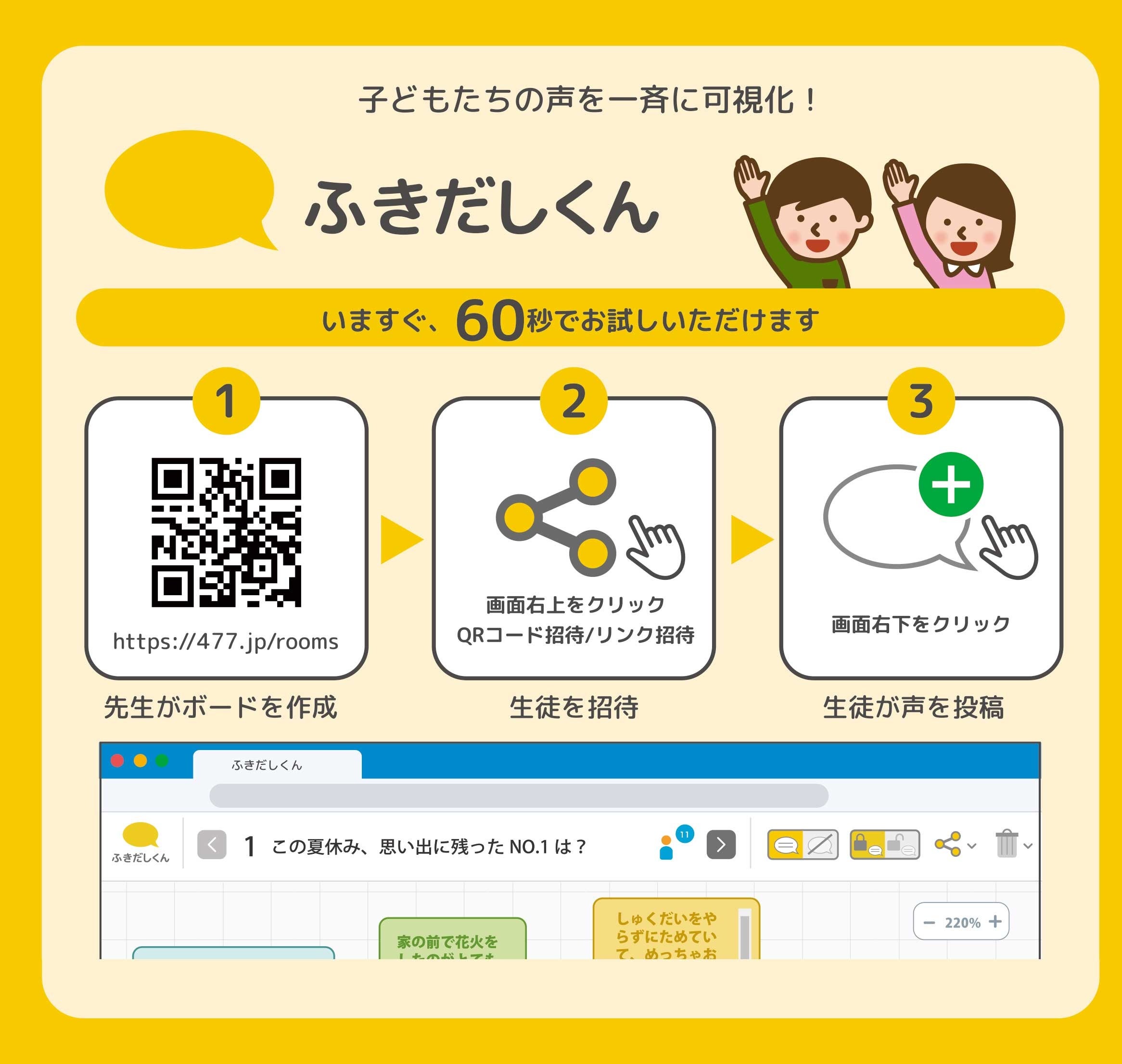 株式会社ティーファブワークス(本社:千葉県柏市 代表取締役:高松 基広)は、授業や講演会で生徒・参加者の声を一斉に可視化するサービス「ふきだしくん(ベータ版)」の提供を開始しました。
