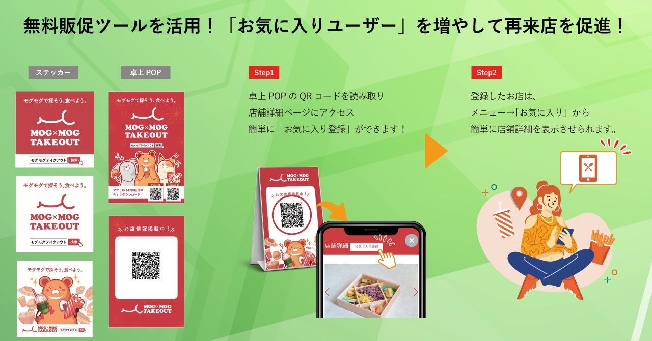 モグモグテイクアウトは、テイクアウト専門のポータルサイト・アプリで、決済方法や営業時間などの営業スタイルを変えずに無理なくテイクアウトをPRできるサービスです。