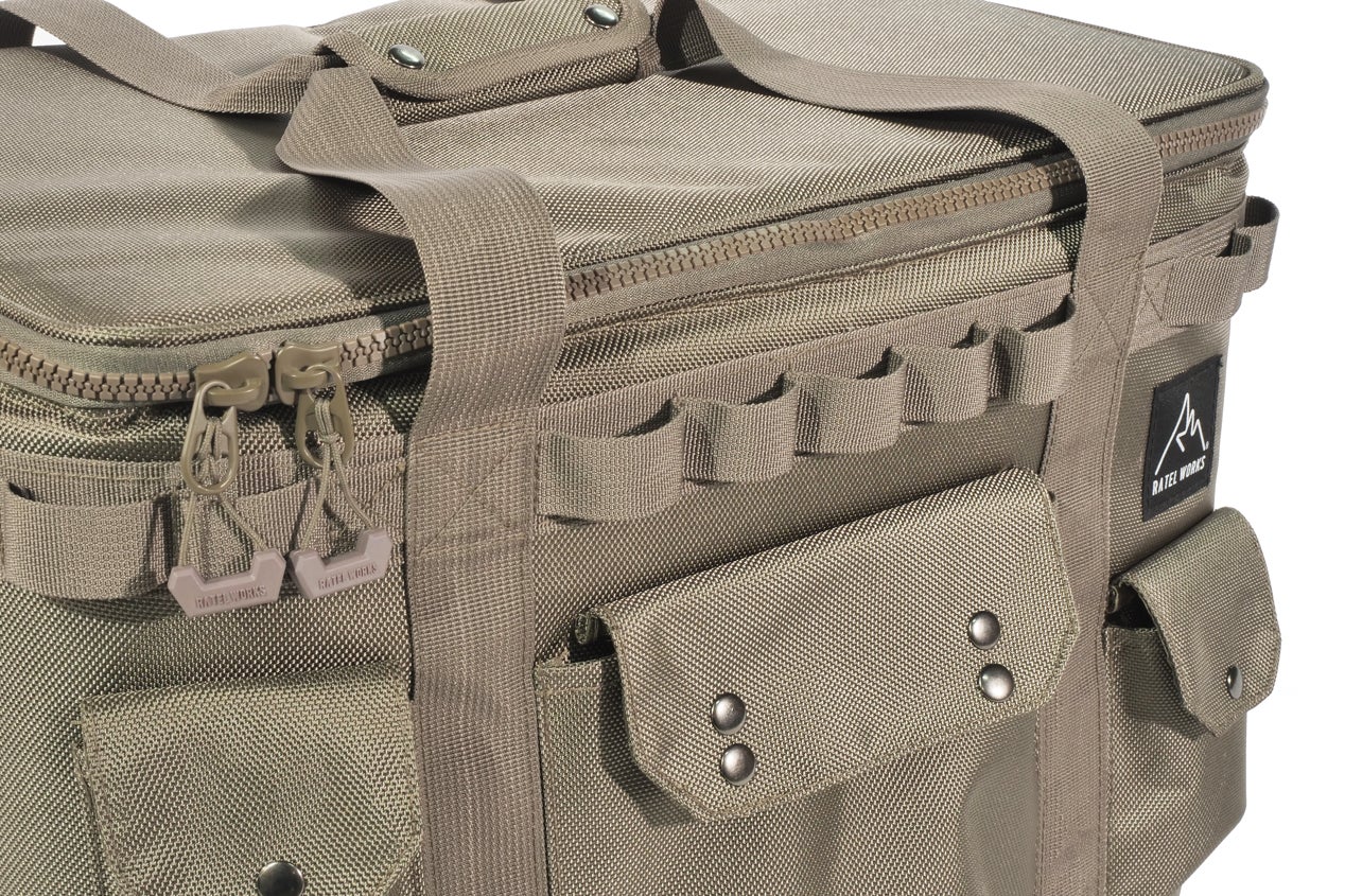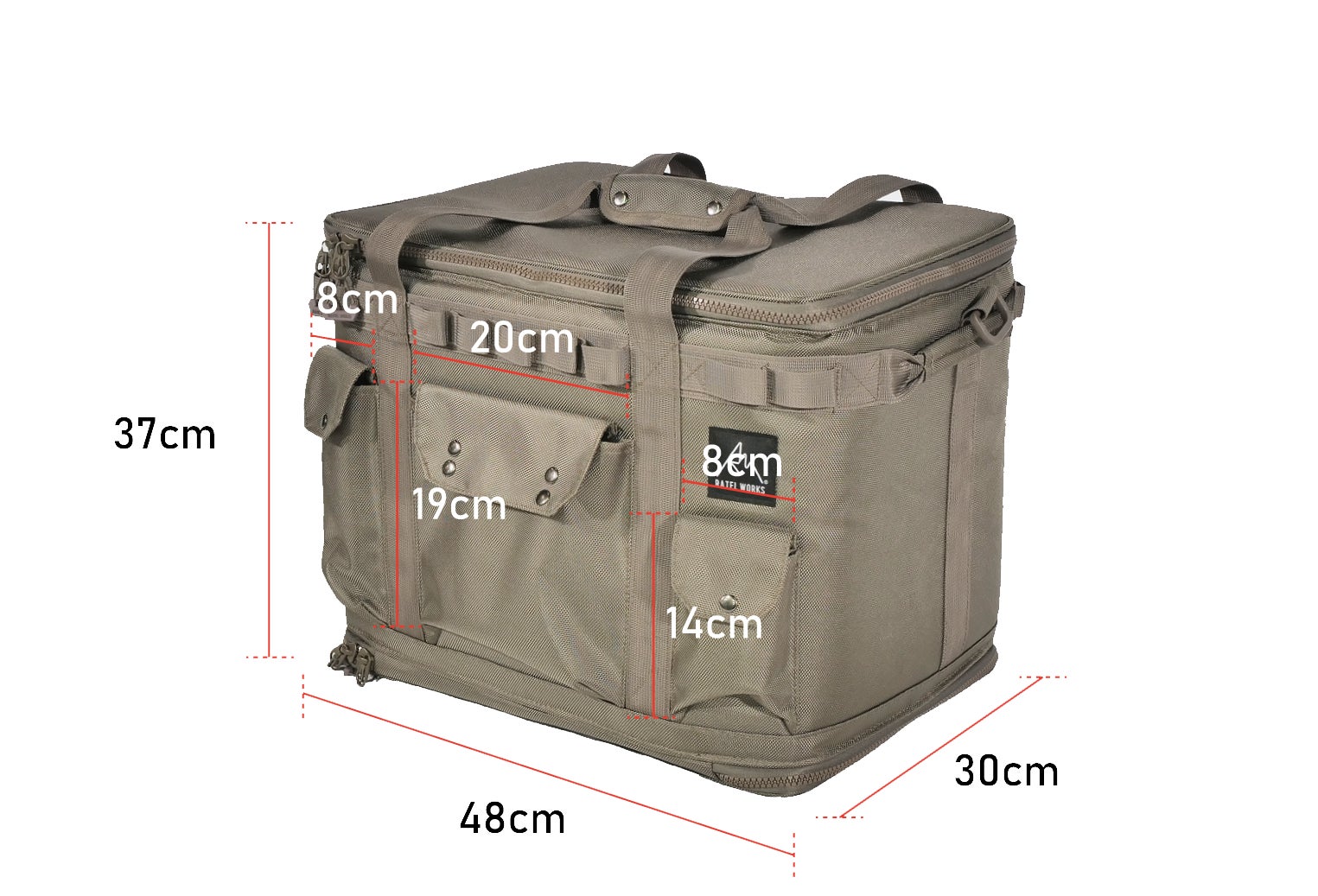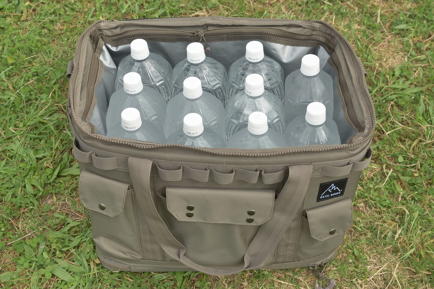 6層構造になっており、中でもウレタンフォームの厚みが底面で50mm、上面で30mm、側面で20mmあります。一般的な簡易ソフトクーラーの3倍以上あり断熱効果は2倍以上です。また、表面の生地は1680Dで裏面をPVC加工することにより、より気密性が高く、温度反射に優れた製品に仕上がりました。また、保冷力実験では、他社ハードクーラーと同等クラスの保冷力を実現いたしました。