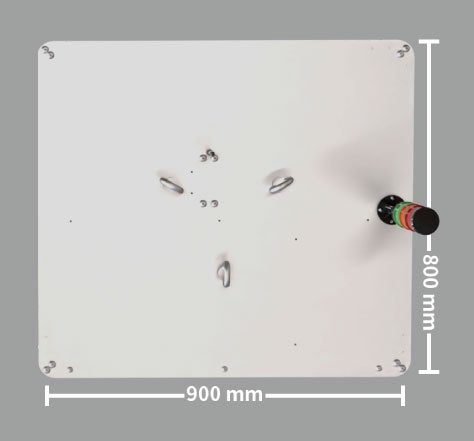 VJ9560PLの設置面積は 900 mm × 800 mm であり、コンパクトな設計です。既存のパレタイジング設備の近くに追加しやすくなっています。パレタイジング設備の周囲がフェンスなどで囲われている場合は、VJ9560PLを操作するためのタッチパネルをフェンスの外側に設置することが可能です。