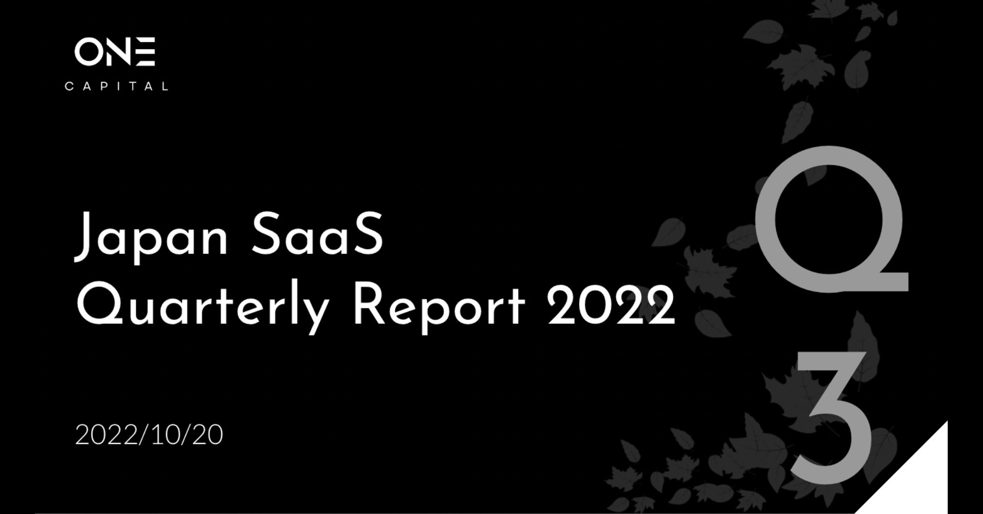 独立系VCのOne Capital、Japan SaaS Quarterly Report 2022.Q3を公開