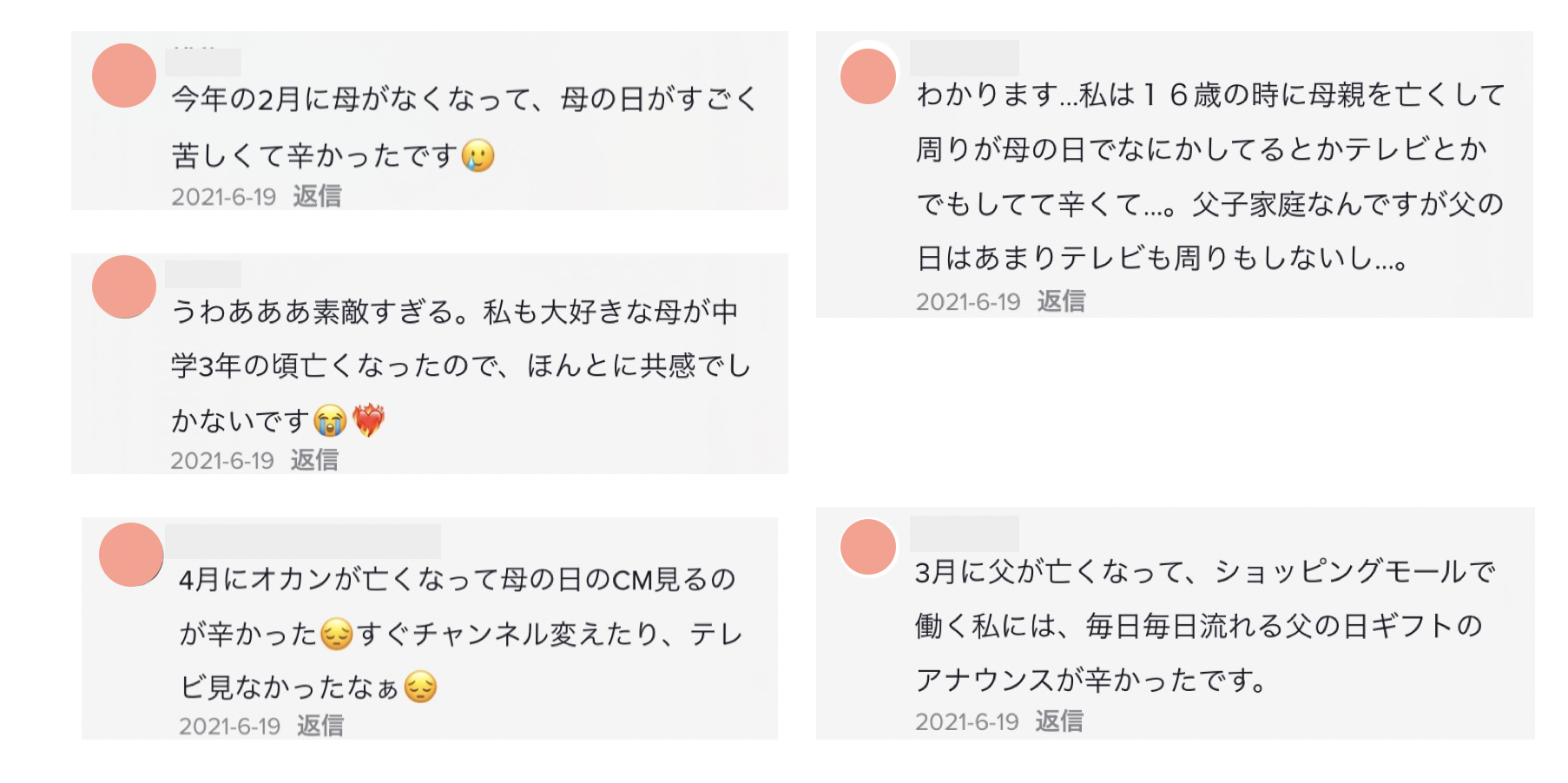 実際に参加した方からは「父の日のCMを見るのが辛かったからこの企画があってよかった」などの声を頂きました。