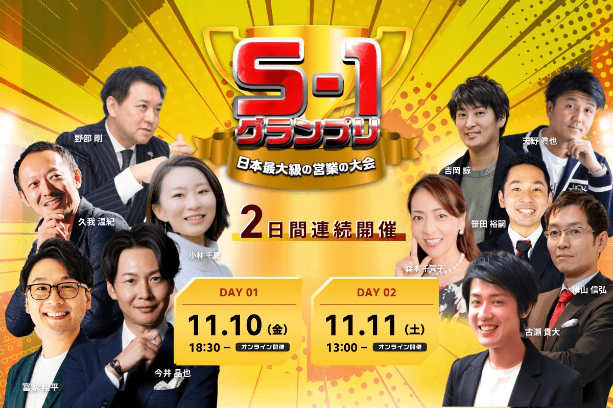 2023年11月10-11日、第7回S1グランプリ開催。前回2,000名を超える申込。超優秀なセールスパーソンが熱戦を繰り広げましたが、今年もその熱気は健在。さらに、今回は営業のプロフェッショナルたちによる厳しい審査が待っています。