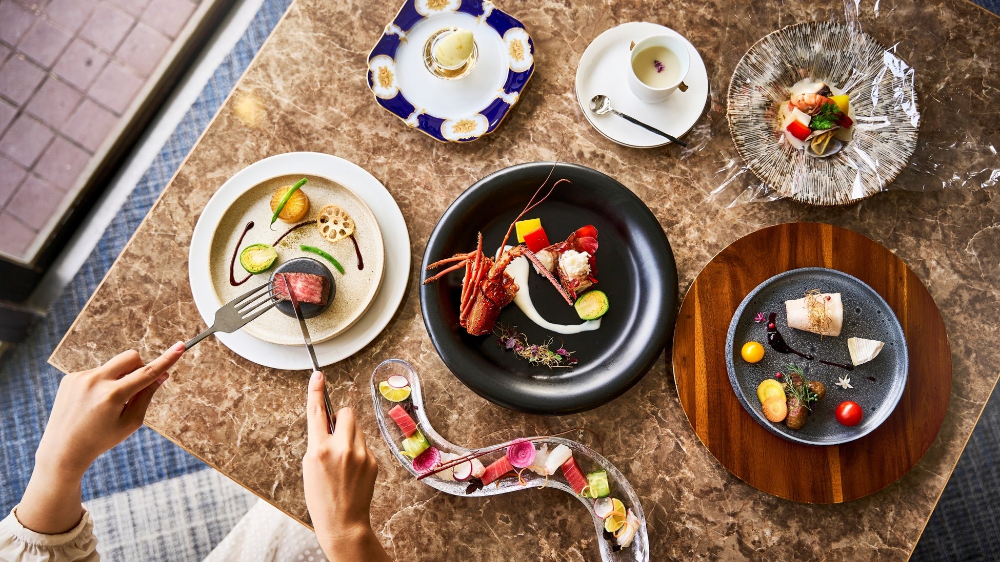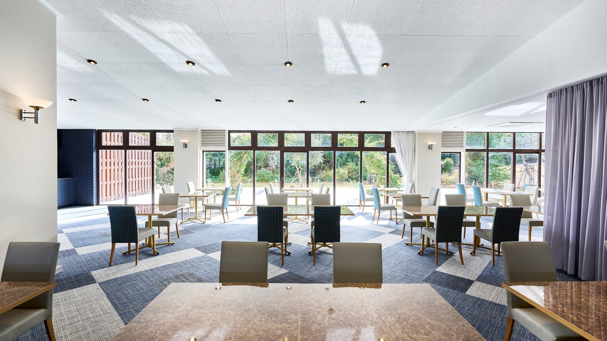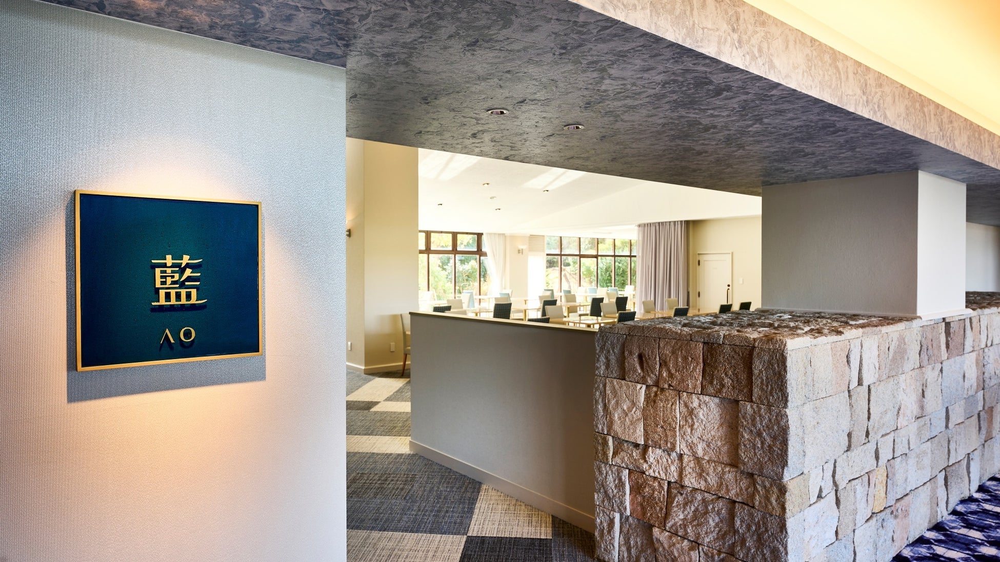 黒潮の海の表情と光注ぐ爽やかなガーデンをイメージしたレストラン〔藍AO〕。大切な人とのご滞在のひととき、肩の力を抜いて和やかな時間をお過ごしいただける空間にリニューアルしました。