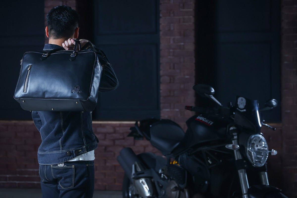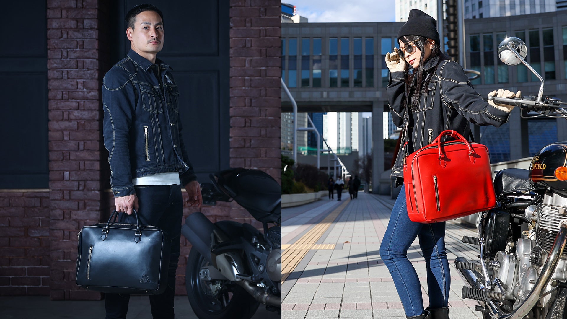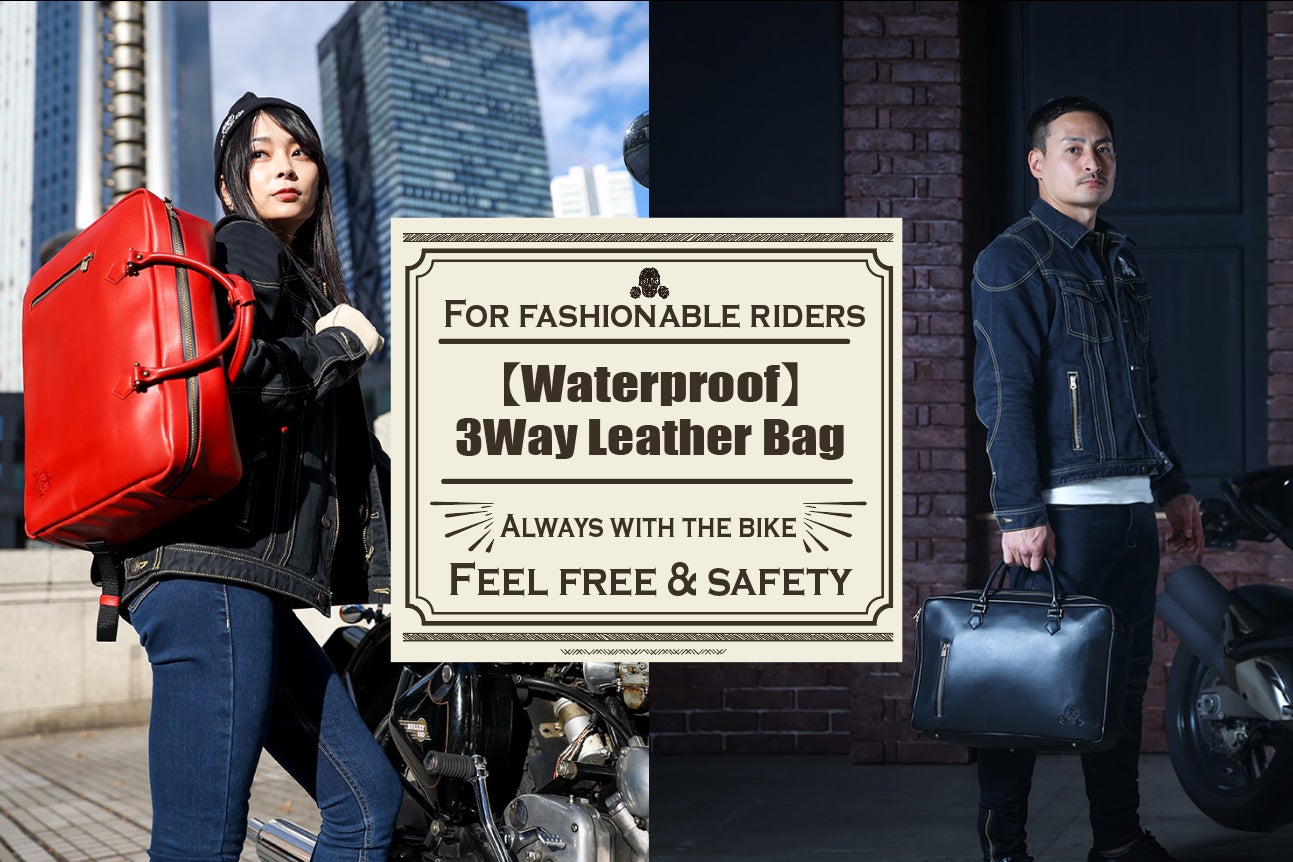 今回、新規プロジェクトを実施するのはバイク・ビジネスのどちらも活躍する3way防水レザーバッグです。様々な用途がありますが、以下が大きな特徴です。