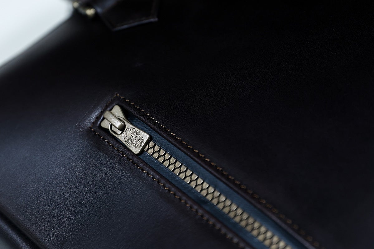 - 防水革・撥水ジッパーを採用。浸水のリスクを低減。