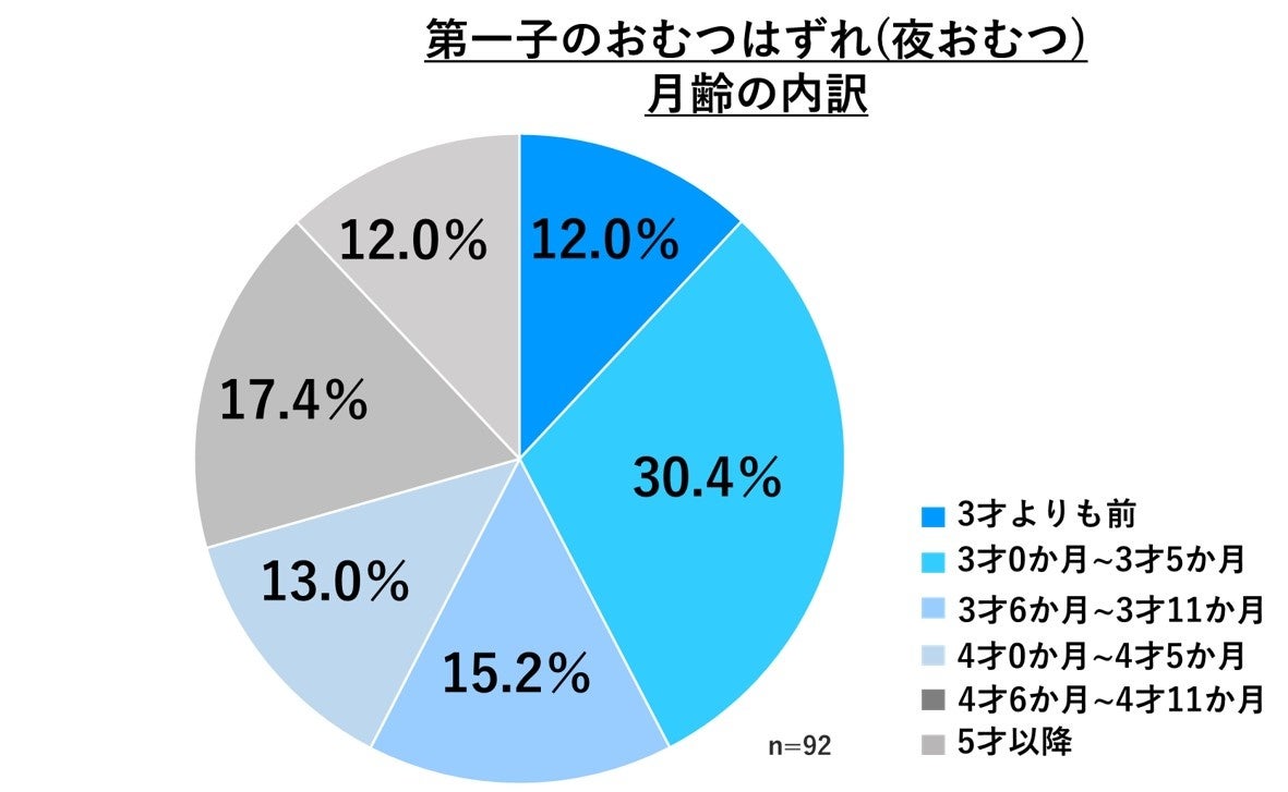 ①3歳までのおむつはずれはわずか約12%。時期にばらつきがみられ、多様なおむつはずれの状況が明らかに。