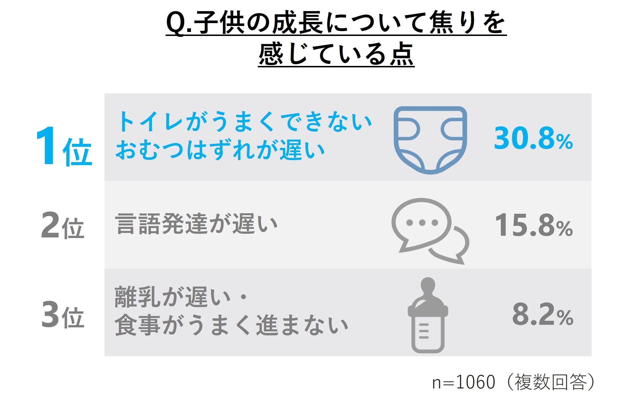 子供の成長に関する悩み1位は「トイレがうまくできない・おむつはずれが遅いことへの焦り」。