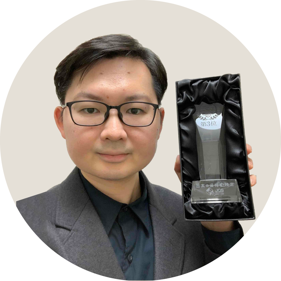 「大会」というもので賞状や盾をいただくのは人生で初めて、いわんや賞金をや、です。非常に恐縮しております。この度の僥倖を期に、さらなる資格の取得に励みたいと存じます。