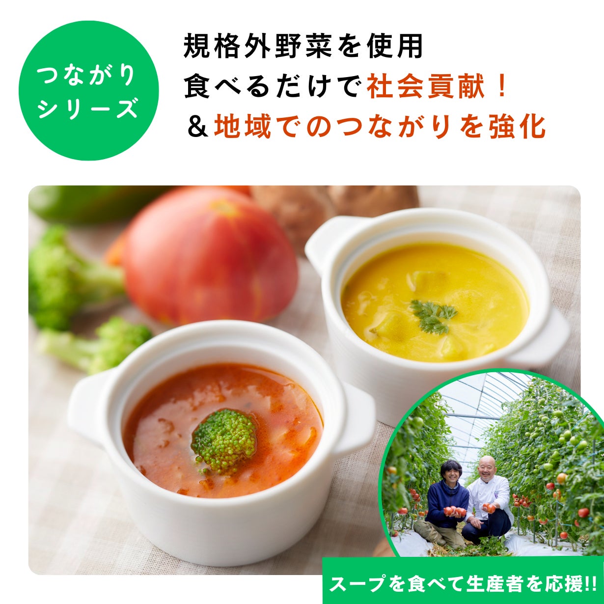 100g中の塩分が0.2gと言う塩分控えめのミネストローネです。17種類の国産野菜を使い、トマトは地元岡垣町の太田さんの規格外トマトを使用しています。