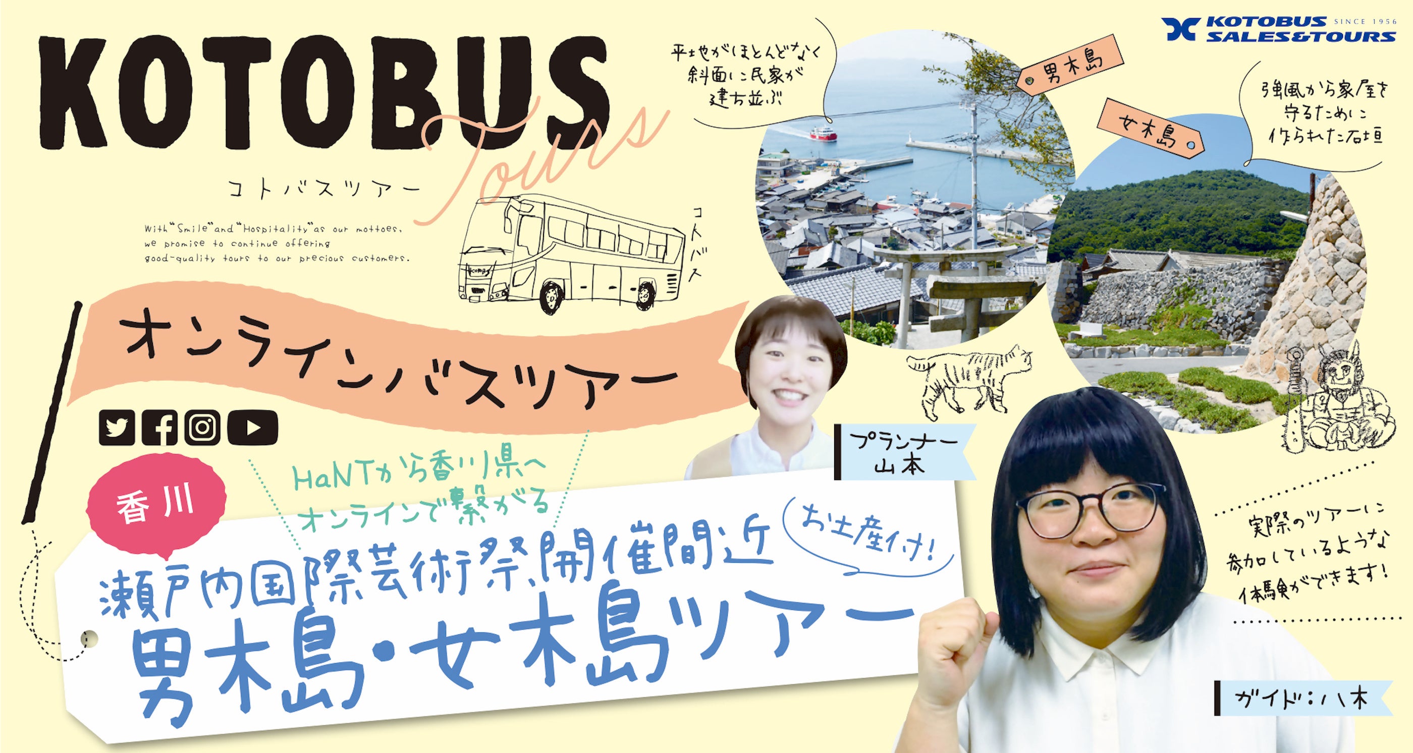 毎回完売となる香川県のバーチャルバスツアーが、ミニオンラインツアーとして登場します。瀬戸内海の島々の魅力を東京にいながら体験できます。
