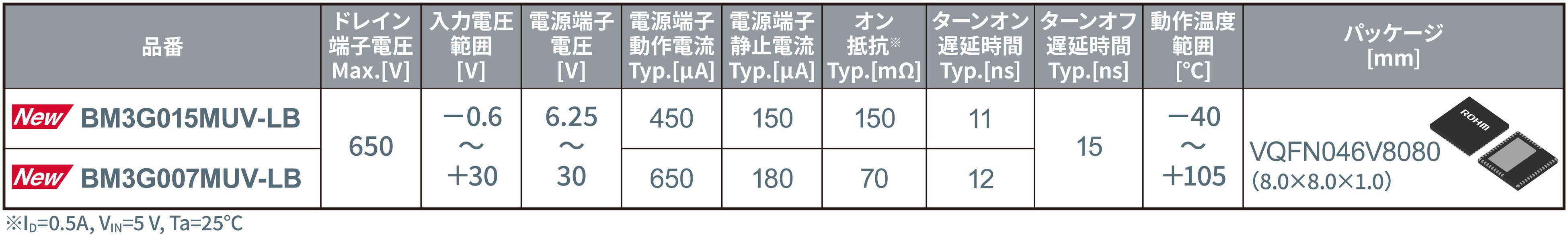 BM3G007MUV-LB:https://www.rohm.co.jp/products/gan-power-devices/gan-hemt-power-stage-ics/bm3g007muv-lb-product