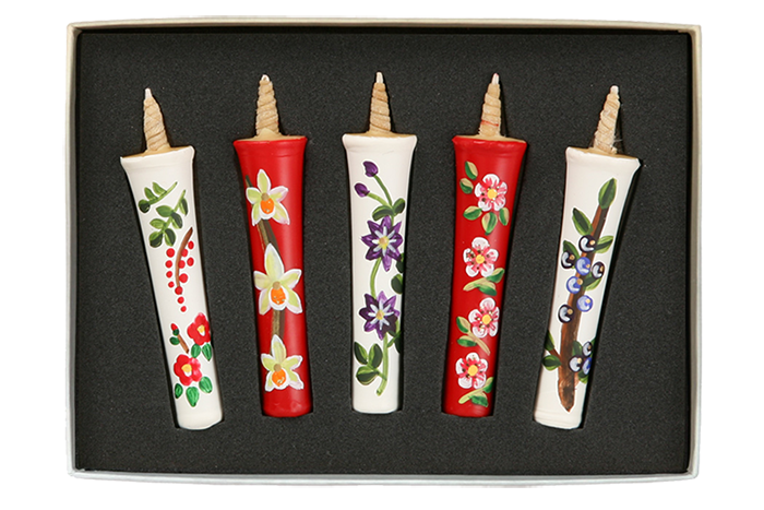 創業120年余。京都市伏見区にて、現在も変わらす植物性の原料のみで和蝋燭を手作りする「中村ローソク」の和・京蝋燭を販売致します。【写真:2匁5本入り絵ろうそく¥3,080】他....