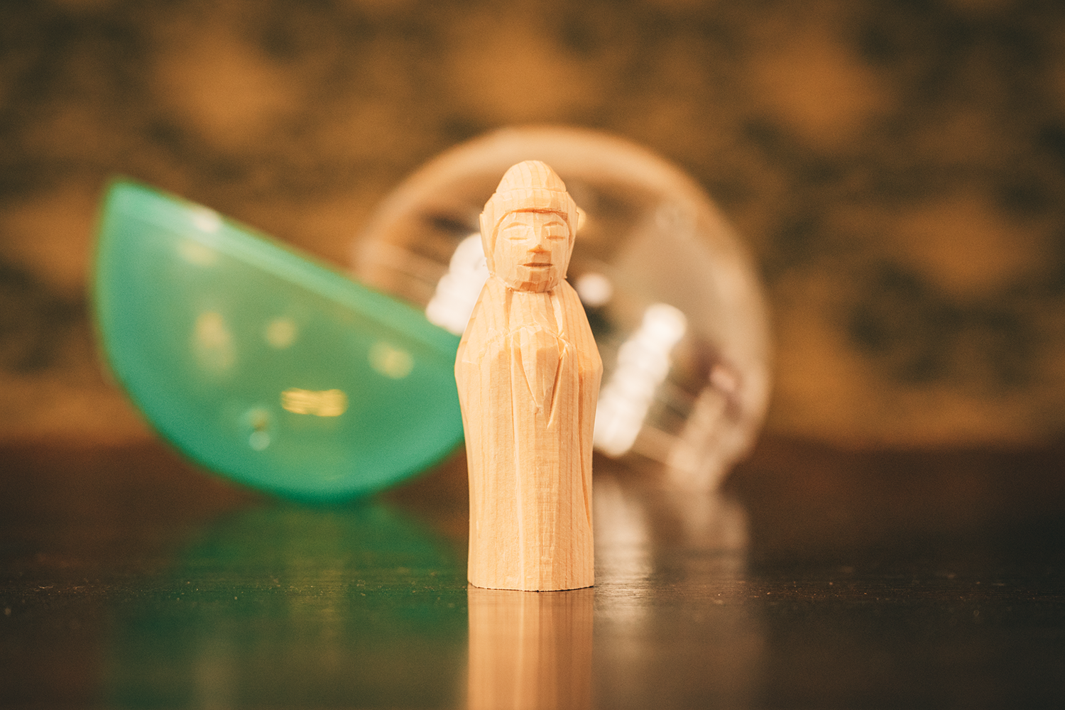 仏師 三浦耀山氏が彫る「一刀彫りの仏像」や、仏壇の飾りを作る 錺金具竹内 の「飾り金具のキーホルダーなど」など、手のひらサイズの仏具が入っています。宮大工の技術で作られた「継手」など超マニアックなアイテムが入っているのも魅力的です。