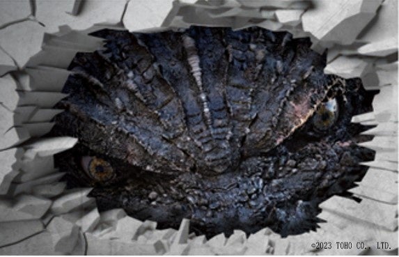 ■幅5.5メートル、高さ2.4メートルの壁に「ゴジラの眼」を設置。絶好の「ゴジラフォトスポット」で唯一の撮影