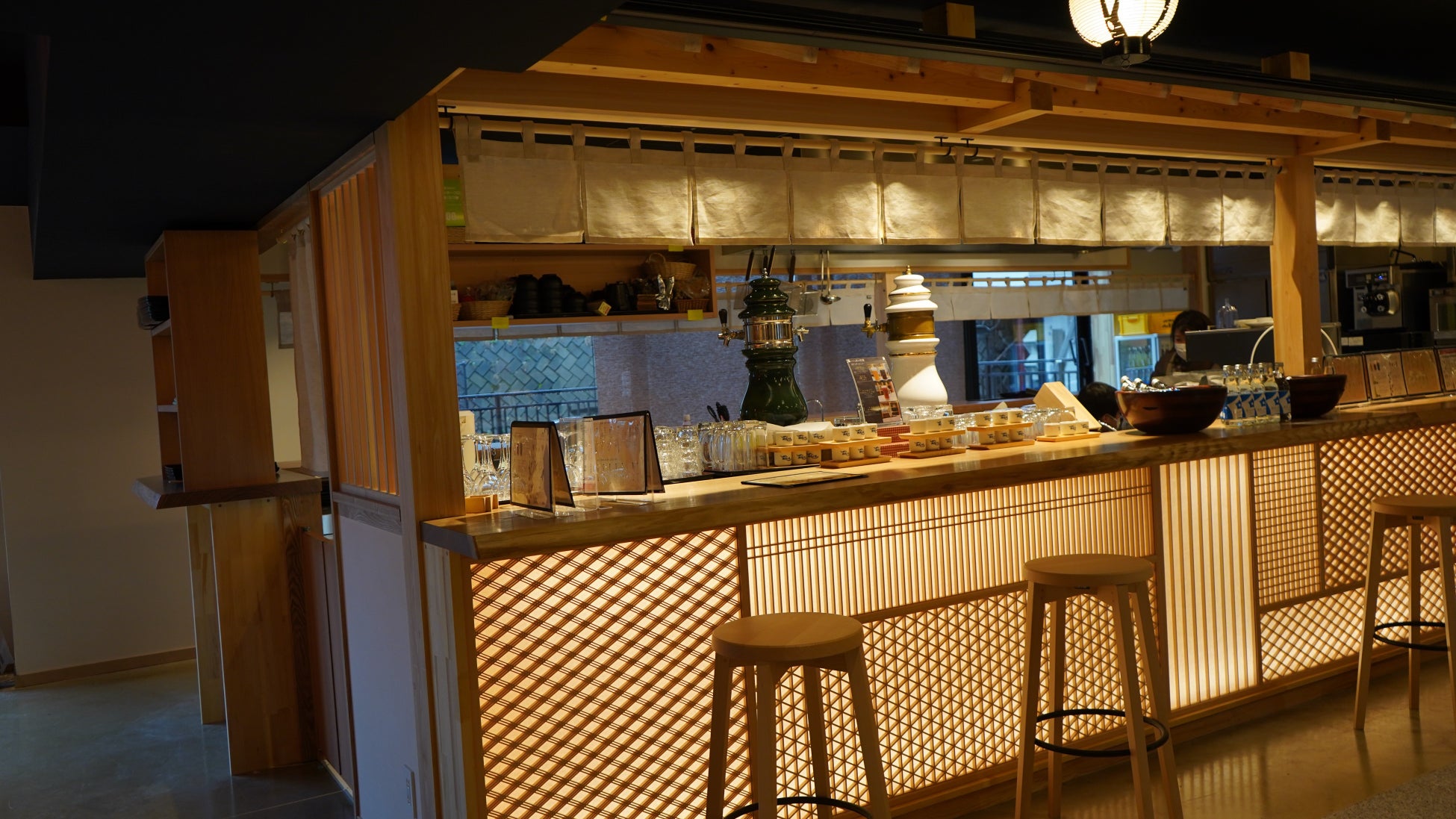仲見世内には、白樺湖周辺の牧場や農家をはじめとした、信州の味覚を楽しめる角打ち屋台がオープン。八ヶ岳や霧ヶ峰をはじめとした山々に囲まれた長野県は、澄んだ空気と清らかな水に恵まれ、酒蔵やワイナリーが豊富な地です。日本酒・ワインの利き酒、オリジナルのクラフトビール、りんごジュースや地元牧場の牛乳を取り揃えています。