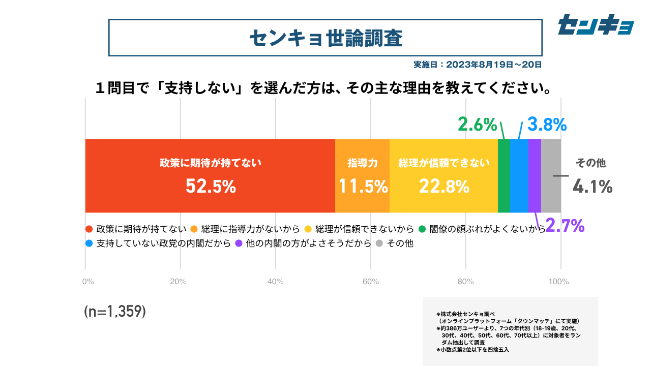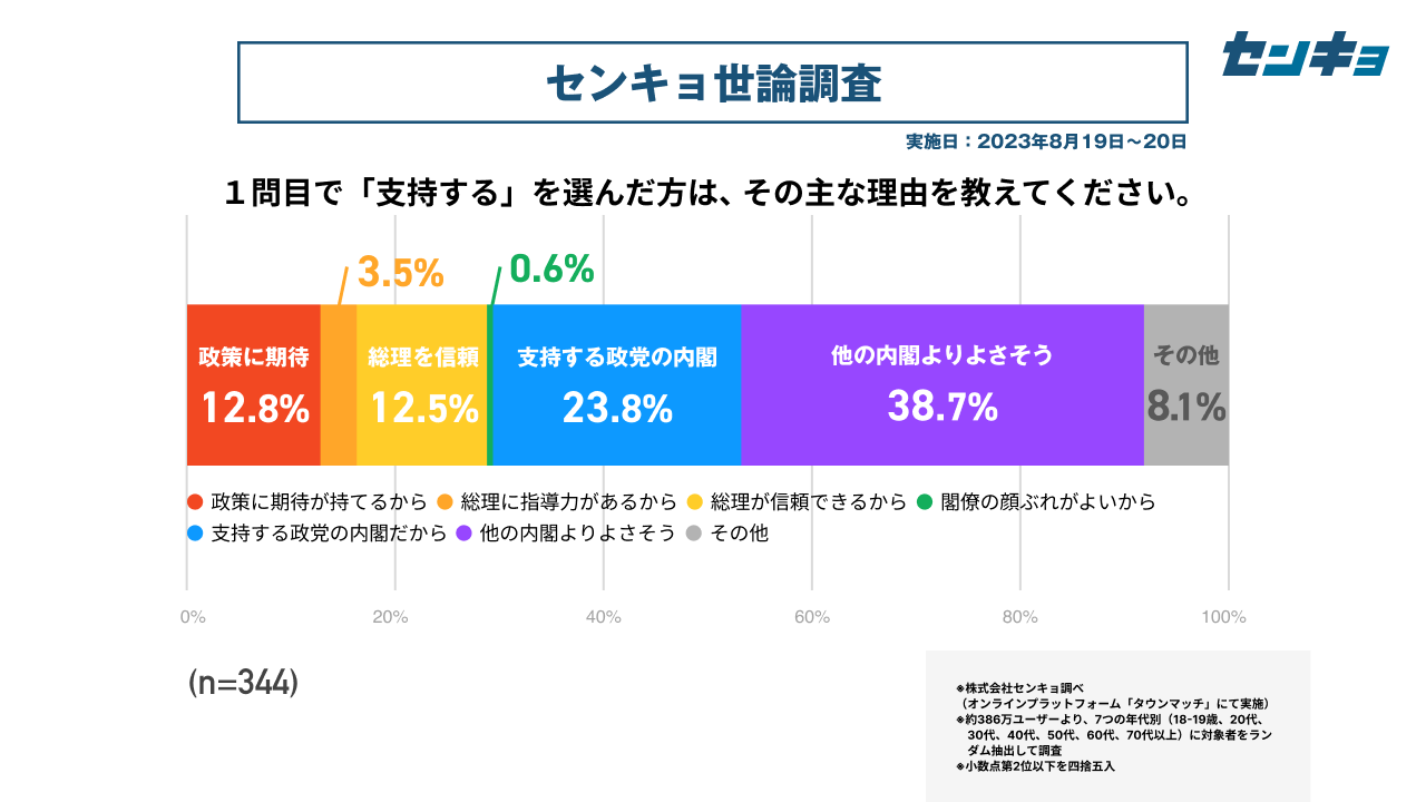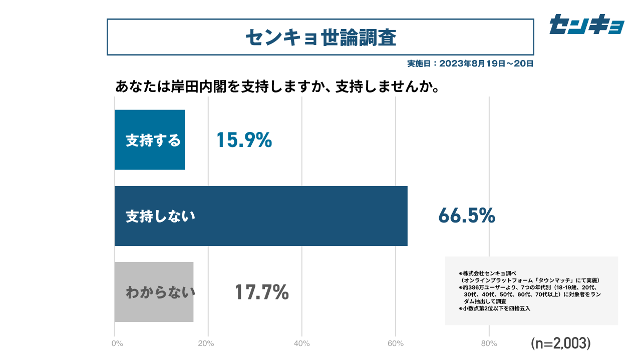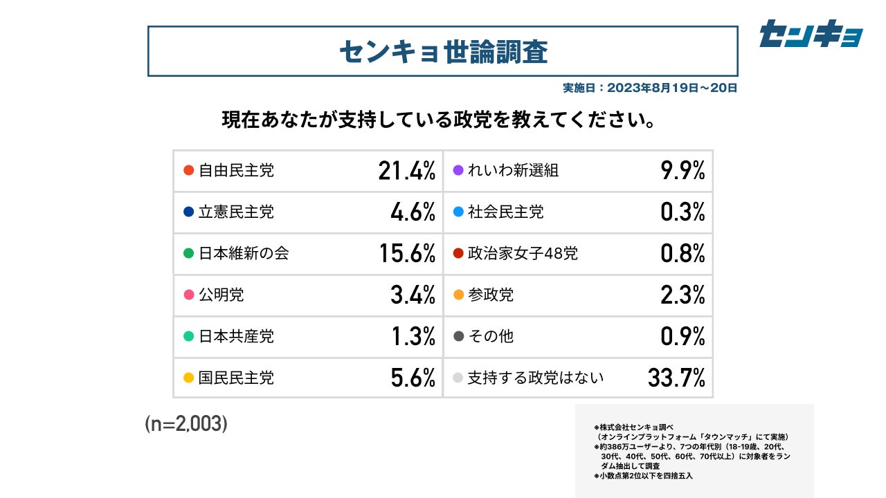 【株式会社センキョ】386万人のプラットフォーム「タウンマッチ」で、定期世論調査を開始。8月の内閣支持率は15.9%