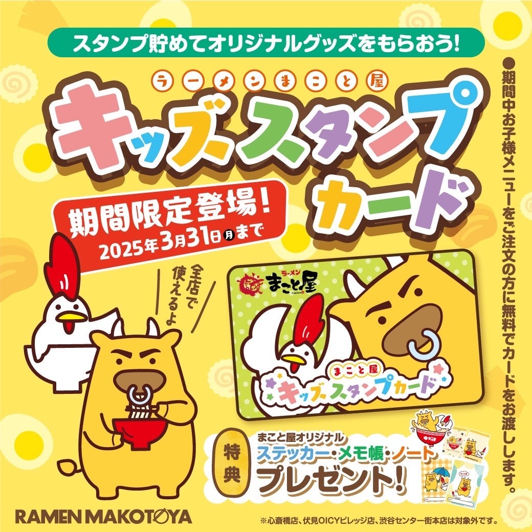 【期間限定プレゼント企画】キッズスタンプカードにラーメンシールを集めて『ラーメンまこと屋オリジナルグッズ』をゲットしよう!2024年11月15日(金)〜2025年3月31日(月)