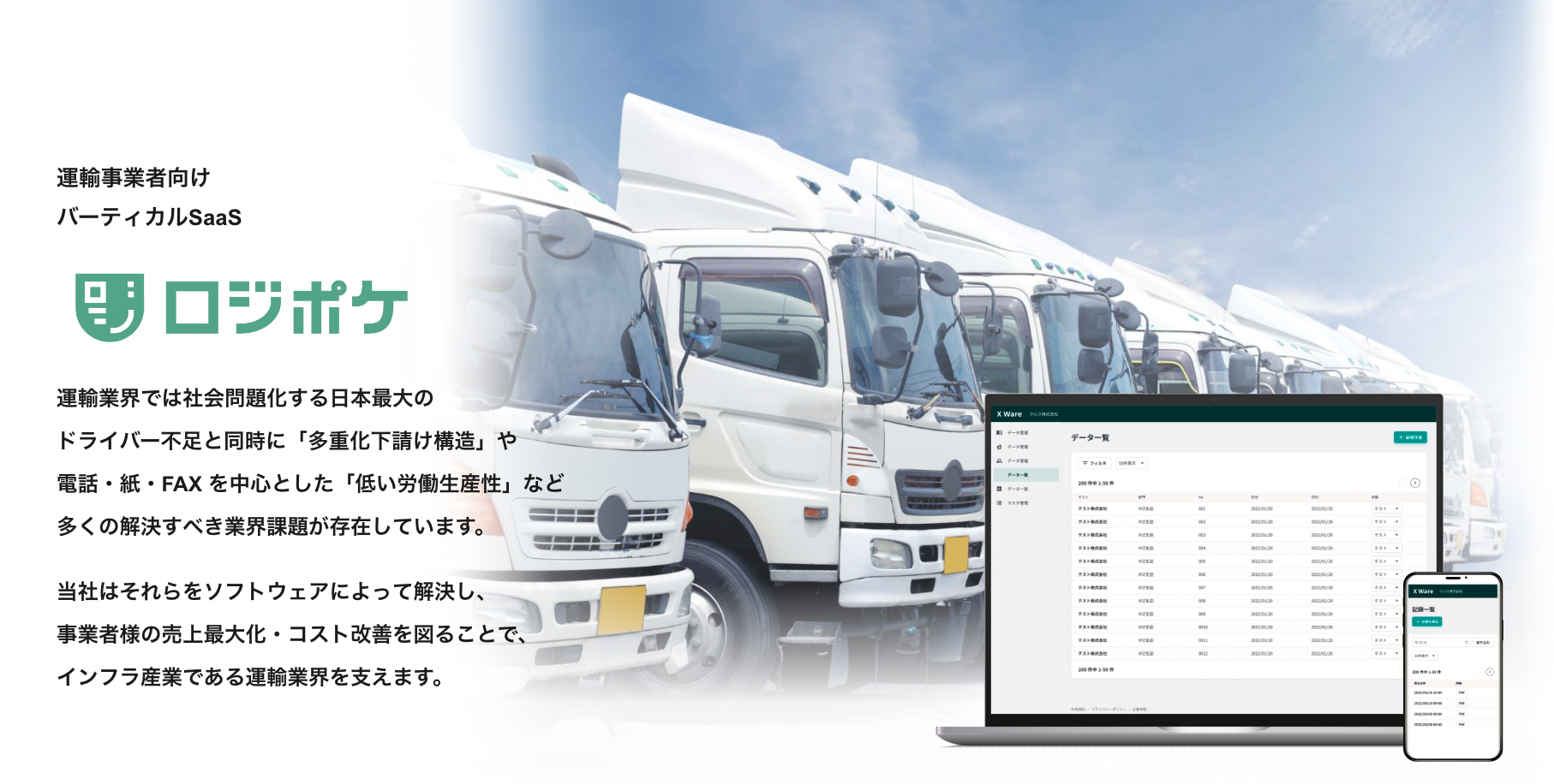 当社は『令和を代表するメガベンチャーを創る』をミッションに物流業界に特化したSaaS・プラットフォームを展開するSaaS事業「ロジポケ」、ノンデスク事業者向けのHRプラットフォーム「クロスワーク」や物流領域・建設領域に特化したエージェントの「ドライバーキャリア」「建職キャリア」等を運営するHR事業など、ノンデスク産業特化の経営プラットフォームを展開しています。