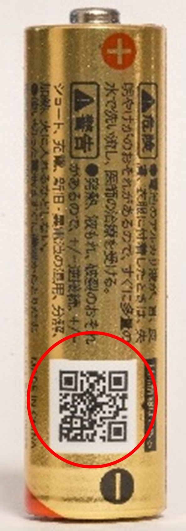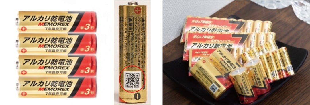 ④乾電池ラベルに印刷された二次元バーコードから、当社乾電池のホームページ「乾電池ネット」へアクセス可能(上記写真中央)。(URL: https://www.kandenchi.net/)