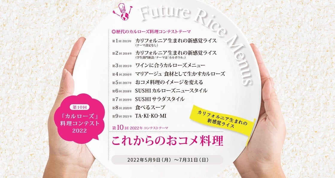 USAライス連合会日本代表事務所(本部:米国バージニア州)は、カリフォルニア産の中粒種「カルローズ」を使ったレシピを競う、第10回「カルローズ」料理コンテスト2022を開催いたします。