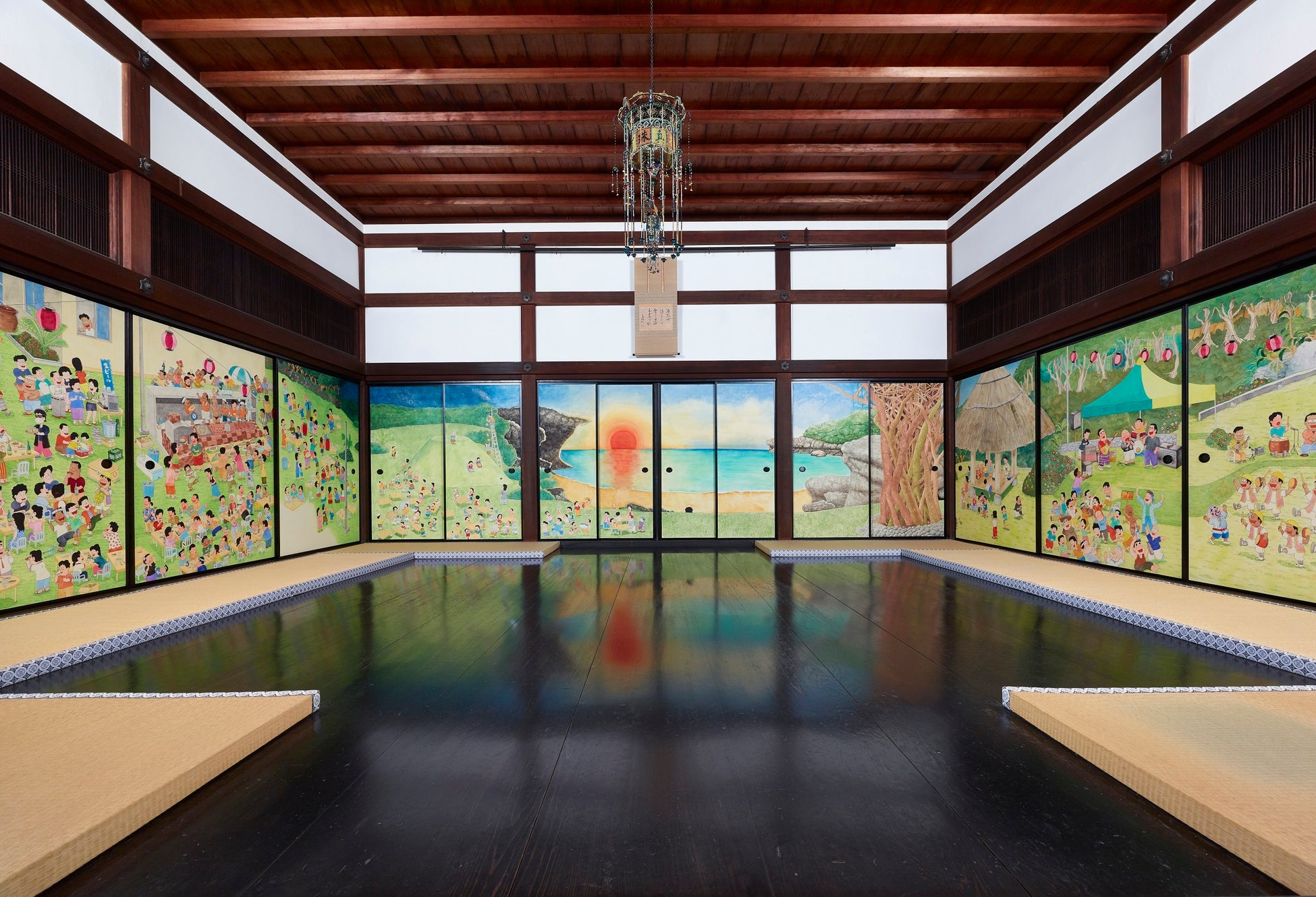 臨済宗大本山大徳寺の塔頭真珠庵は、とんちで有名な一休さん、一休宗純和尚を開祖として一休和尚が亡くなられた10年後の延徳3年(1491)に堺の豪商、尾和宗臨によって建てられました。大徳寺中興の祖である一休宗純ゆかりの寺院であることから、大 徳寺において特別な位置を占めます。2018年、約400年ぶりに新調された方丈襖絵は『釣りバカ日誌』で有名な漫画家 北見けんいち氏、ゲーム「ファイナルファンタジー」のアートディレクターを務めた上国料勇氏をはじめとした現代の日本文化を象徴する分野で活躍する作家が描きました。また今回、17世紀の作品である『源氏物語図屏風』が初公開。真珠庵境内には紫式部が産湯として使用したと伝わる井戸が 現存しており、紫式部ゆかりの地としても有名です。
