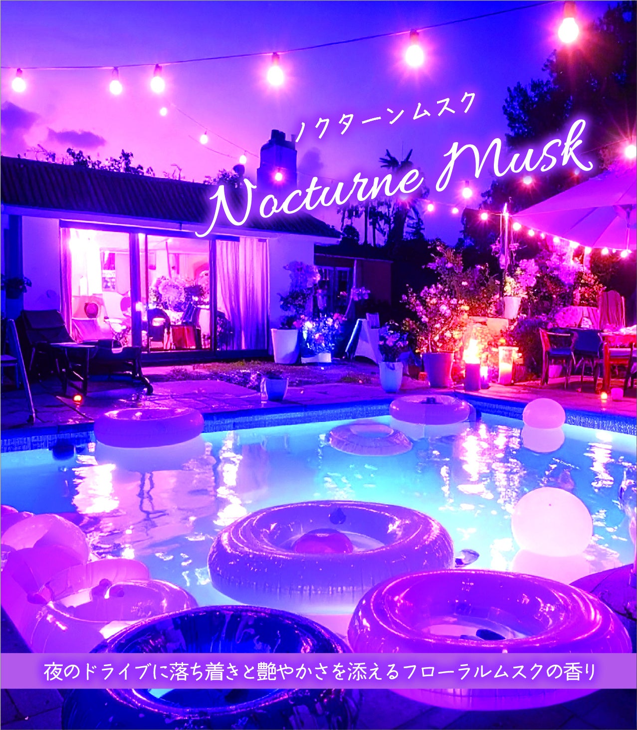 SNSや動画配信サービスの普及により、「夜景ドライブ」「ナイトプール」「ナイトクルーズ」が人気のレジャーシーンとして注目されており、夜の空気感やムードに寄り添った製品ニーズが高まっています。仕事終わりのリラックスタイムや、大切な人との特別な時間を演出する要素として、夜をイメージした香りは新しい価値を提供できると考えます。