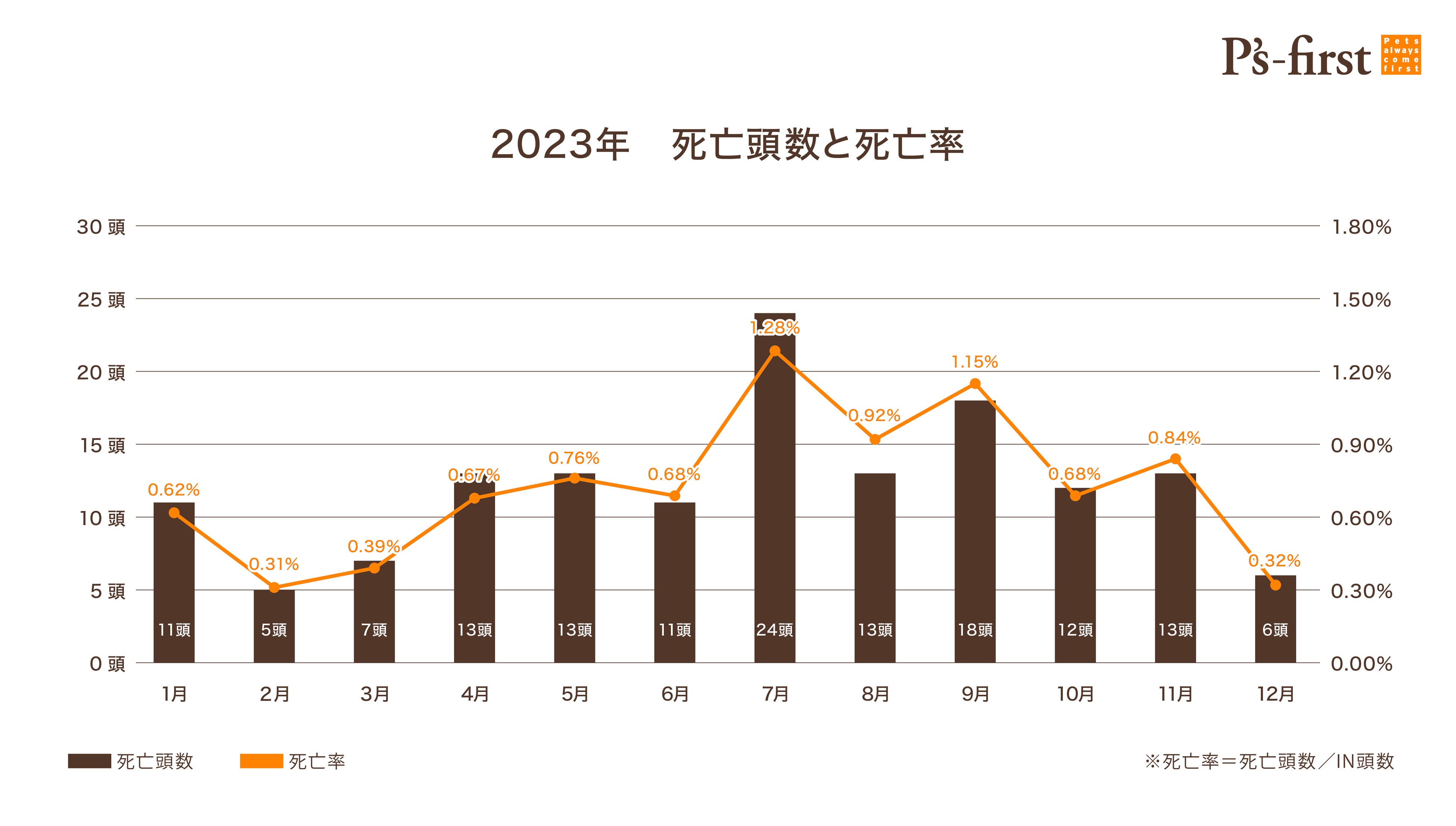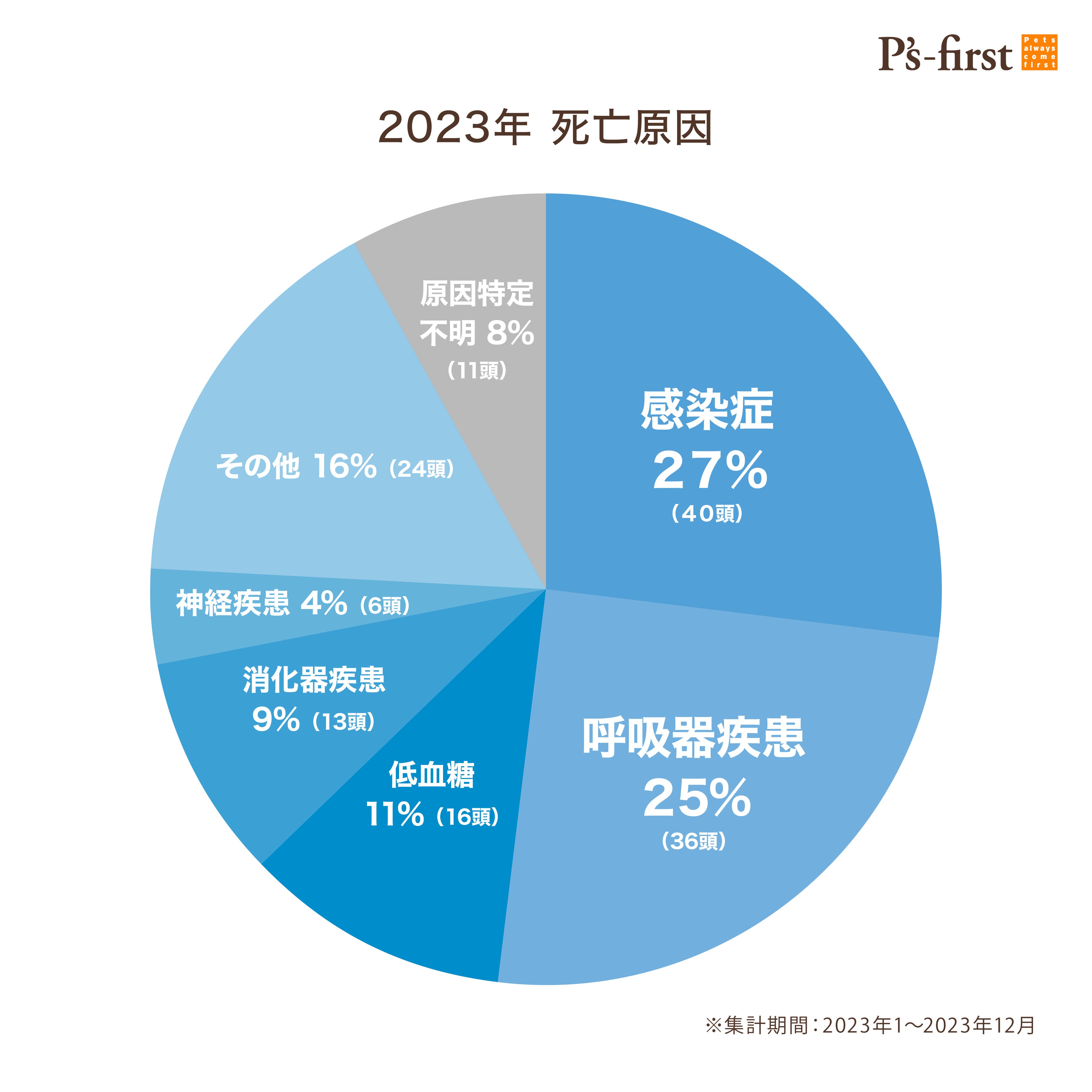 2024年もペッツファーストグループでは、病気や疾患の発生や死亡事故ゼロの実現を⽬指して、積極的に死亡事故の分析と対策を⾏ってまいります。