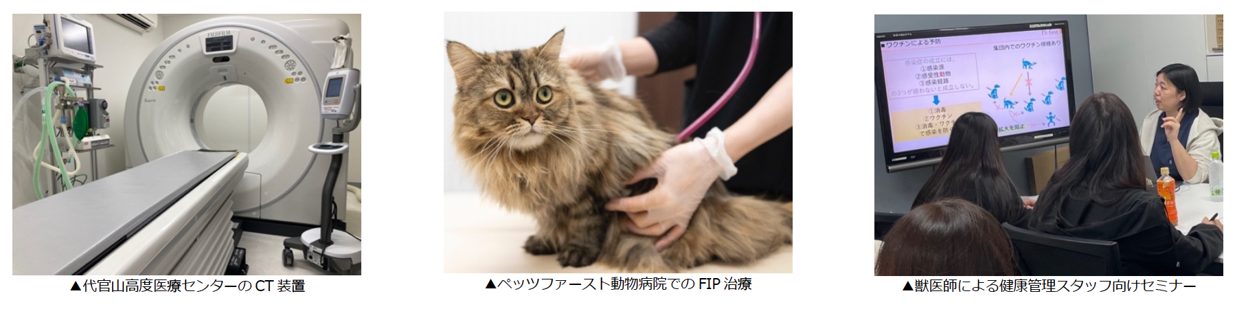 ペットの死亡事故ゼロを目指し、2023年は動物医療機器などの設備を積極的にペッツファースト動物病院中心に導入し、病気の発生原因を無くすための共同研究を各大学、メーカーと取り組み、特に猫の重篤疾患であるFIPの治療方法の確立、洗浄、除菌剤のグローバルメーカーであるエコラボ社が推奨するペロキサイドを使用したパルボウイルスなどの感染症対策に有効な消毒⽅法への変更、若齢期の低⾎糖の発生を軽減するための食事管理を徹底しました。