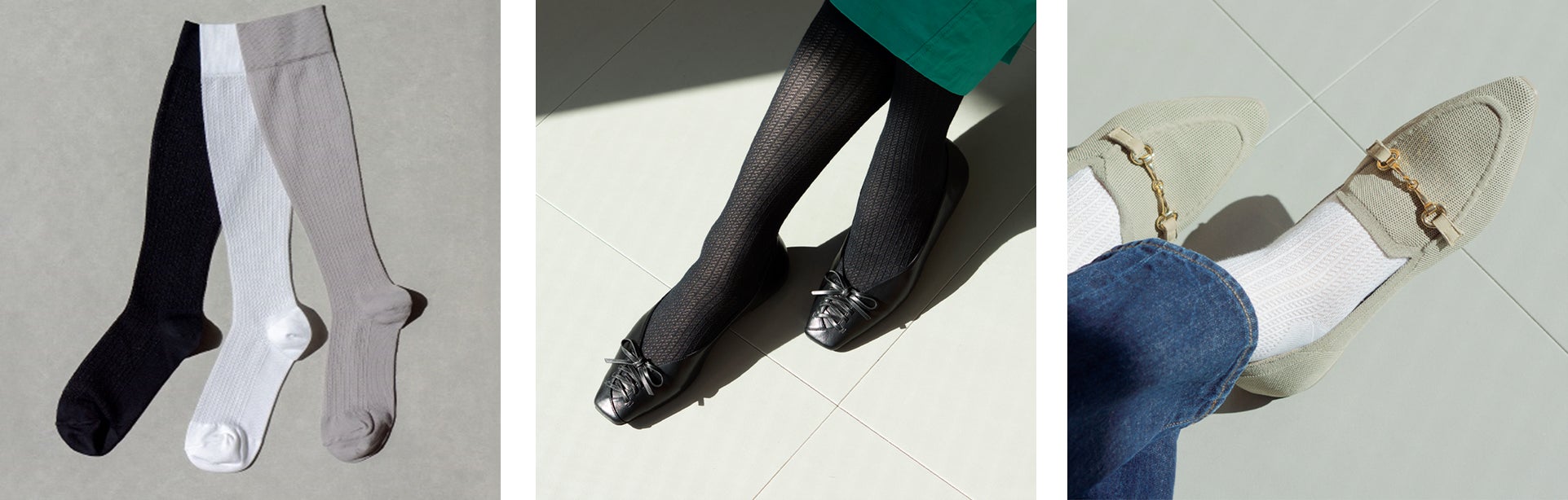 洗練されたデザインと快適な履き心地を追求した着圧ソックスなど、日々のコーディネートに彩りを添えながら、からだを整えるアイテムを展開しています。
