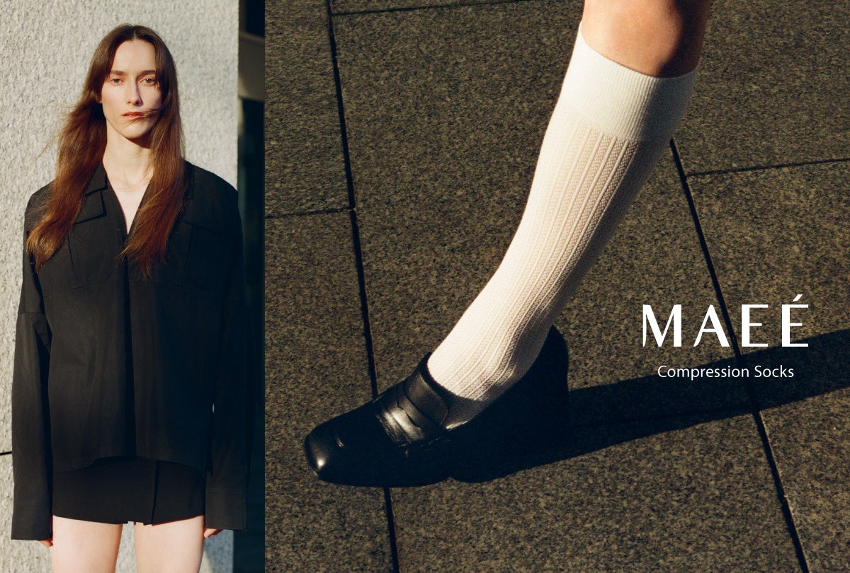 MAEÉコンプレッションソックスは、2023年10月の発売以来、ファッション性の高い上質なソックスでありながら、履くだけで脚をサポートしてスッキリさせる着圧ソックスとしてご好評をいただいています。これまでオンラインをメインに展開しておりましたが、関西地域のお客様も多く、実際に手に取って商品を見たいとたくさんご要望をいただいておりました。
