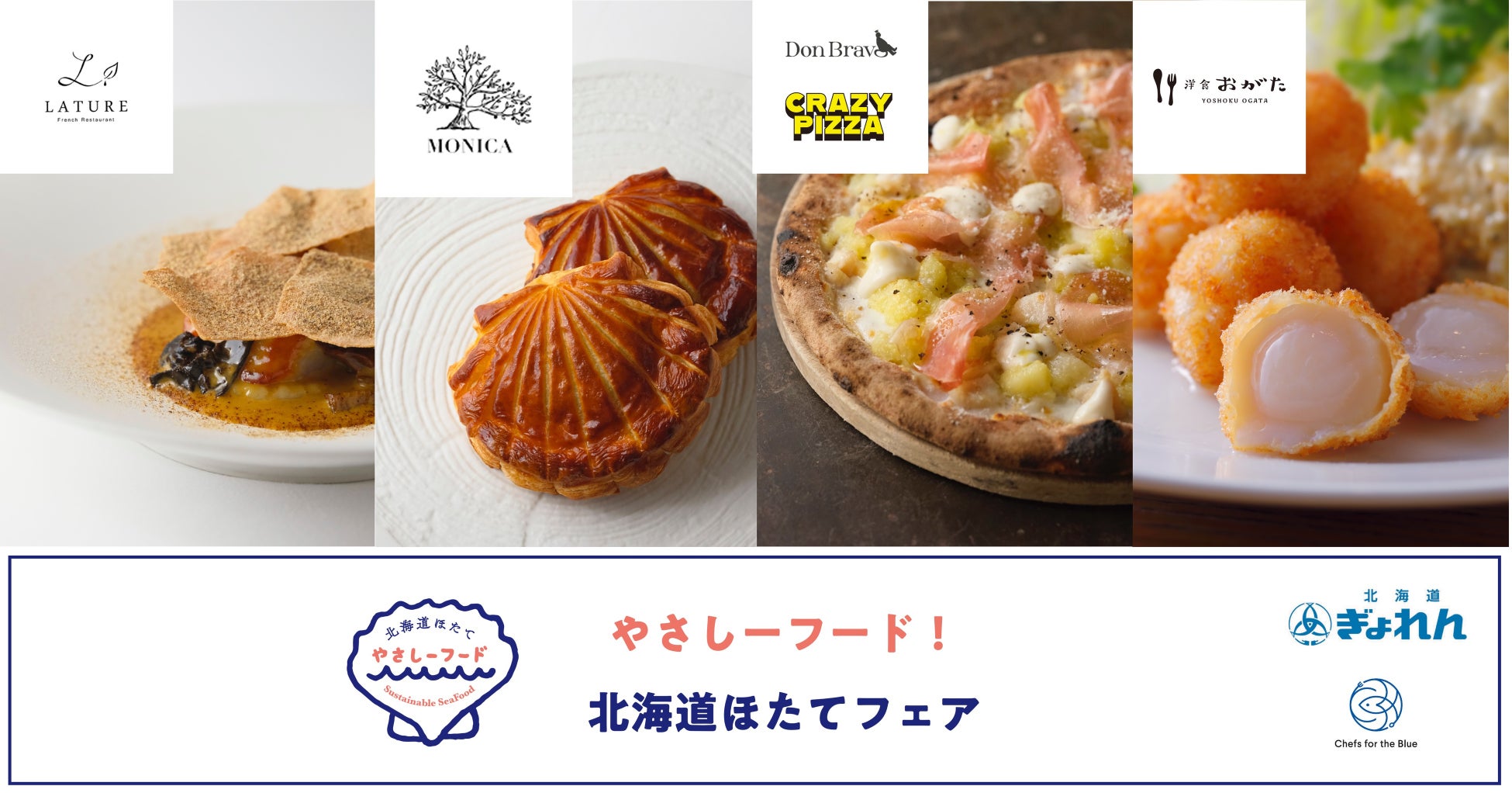 持続可能な海を目指した啓発活動を行う一般社団法人Chefs for the Blue(東京都渋谷区千駄ヶ谷、代表理事:佐々木ひろこ) は、北海道漁業協同組合連合会(北海道札幌市、代表理事会長:阿部国雄 以下:北海道ぎょれん)と、タッグを組み、日本産水産物の中国禁輸から8月24日で丸1年が経過してなお、輸出額の昨対比が5割減となっている北海道ほたての国内消費を後押しすべく、東京と京都のレストランのシェフと共に、「やさしーフード!北海道ほたてフェア」を開催します。