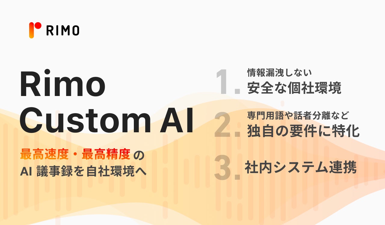 日本語精度最高峰のAI議事録を個社カスタマイズできる『Rimo Custom AI』を提供開始