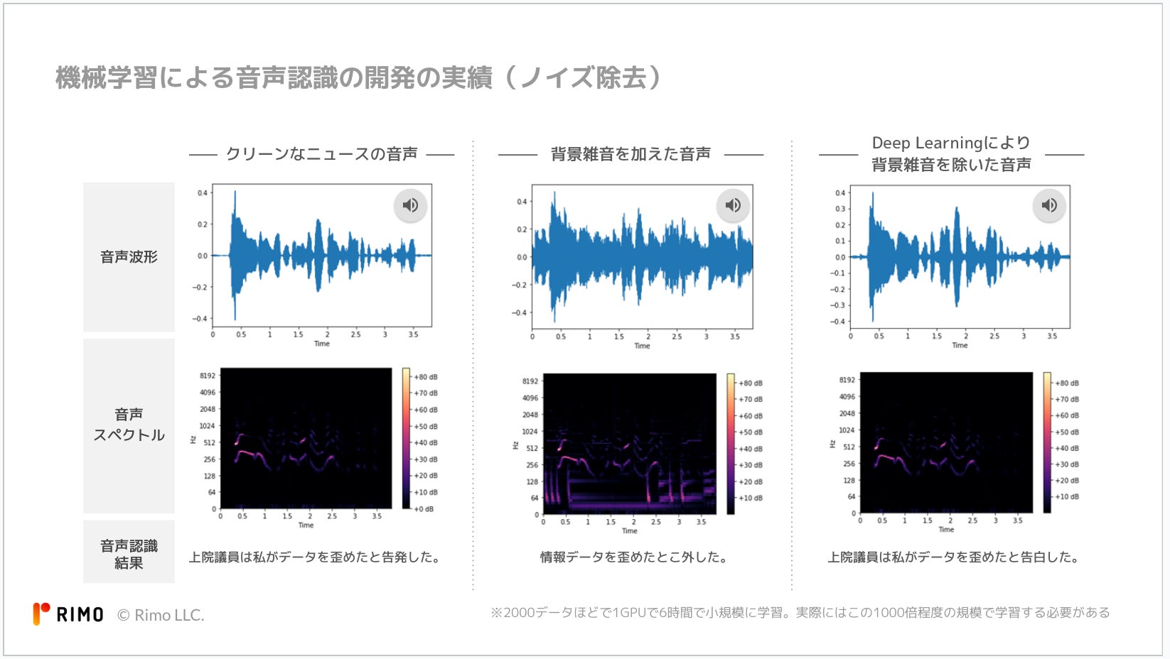 これらの技術は、従来のSaaS製品『Rimo Voice』を通じて、議事録やライティング領域での働き方や生産性向上に貢献してきました。