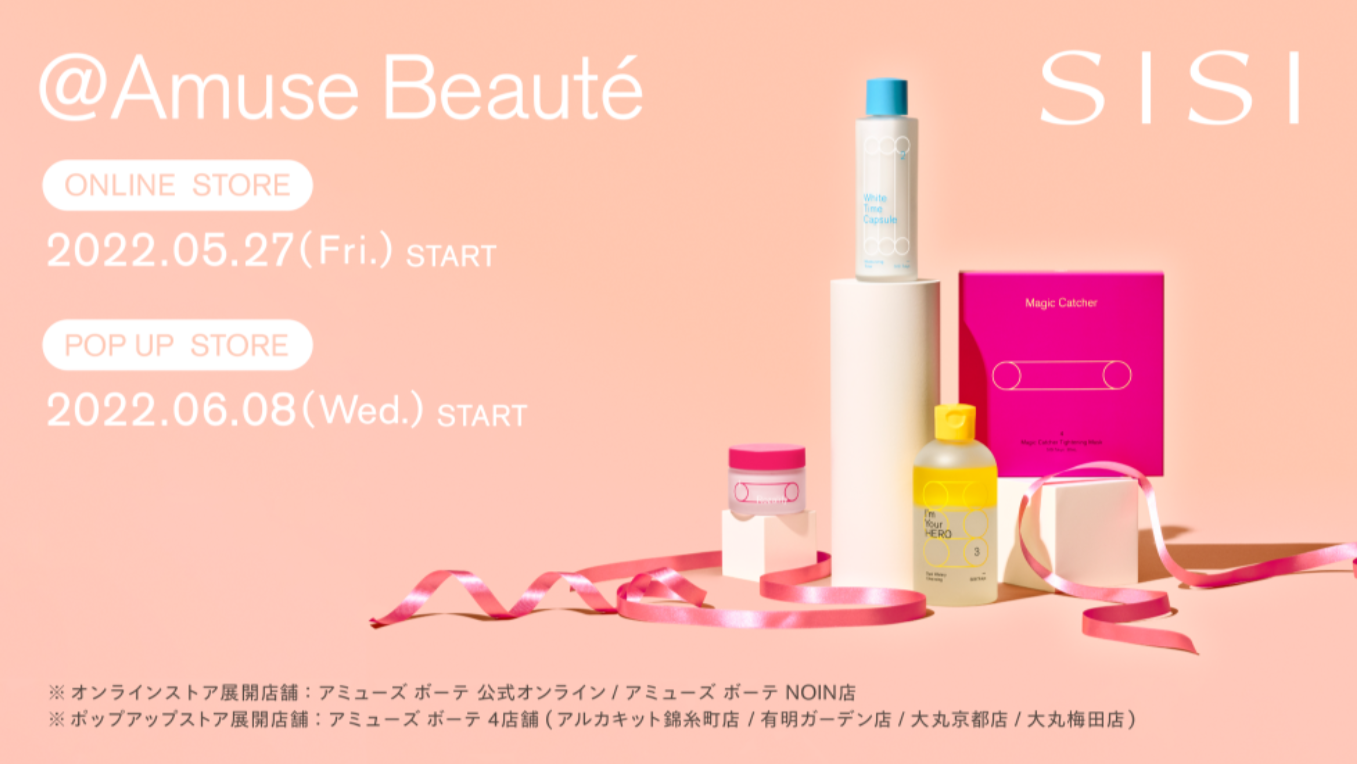 株式会社SISI(本社:東京都千代田区、代表:澤田実加、以下当社)は、クリーンビューティブランド「SISI」が、2022年5月27日(金)よりアミューズ ボーテ 公式オンライン、NOIN店にて、2022年6月8日(水)よりアミューズ ボーテ 4店舗(アルカキット錦糸町店、有明ガーデン店、大丸京都店、大丸梅田店)にてポップアップストア展開されることをお知らせいたします。