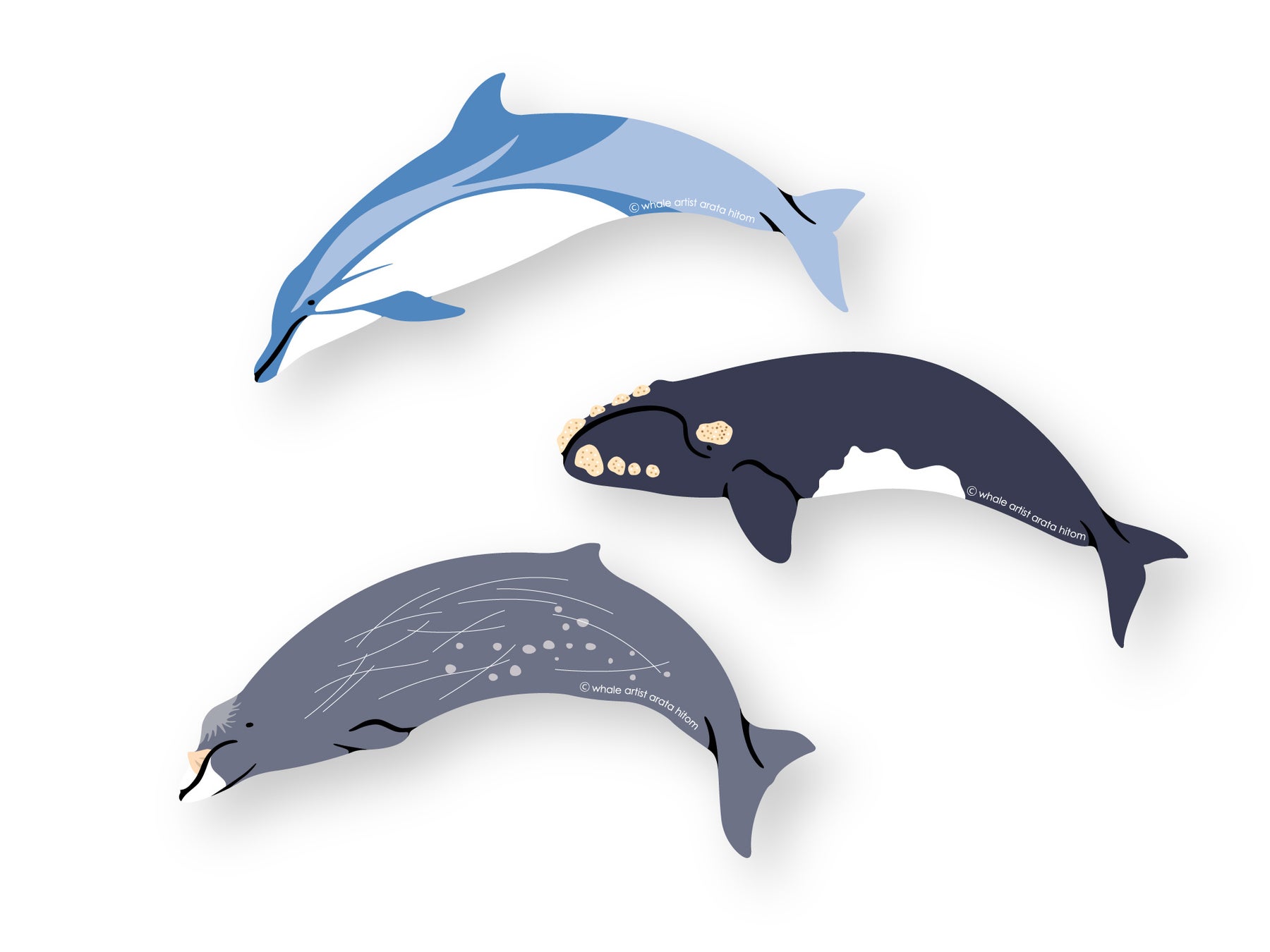 スジイルカ、セミクジラ、ハッブスオウギハクジラの3種類の中から 1枚プレゼント