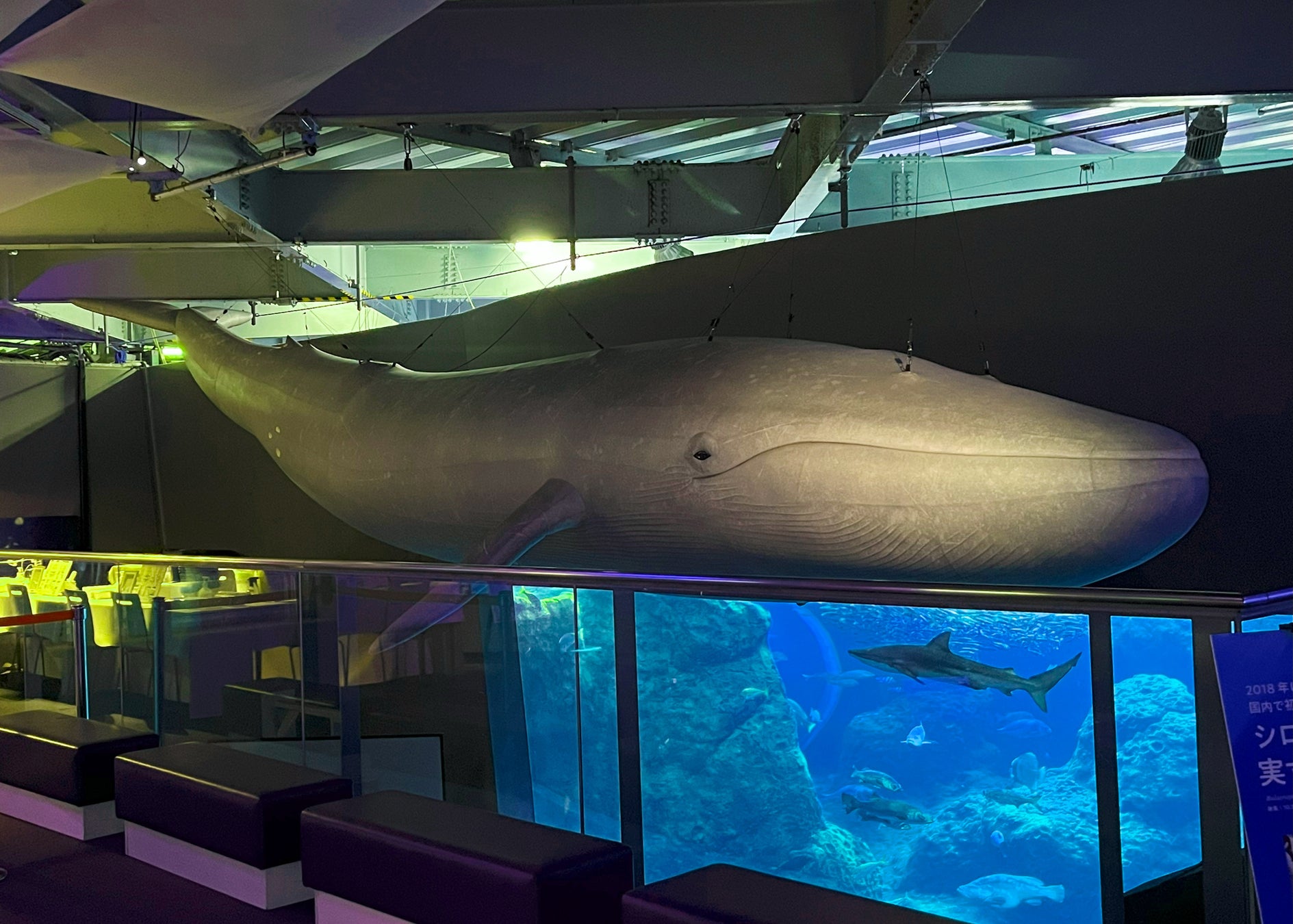 館内各所にあるイルカやクジラの等身大イラストも探してみよう!