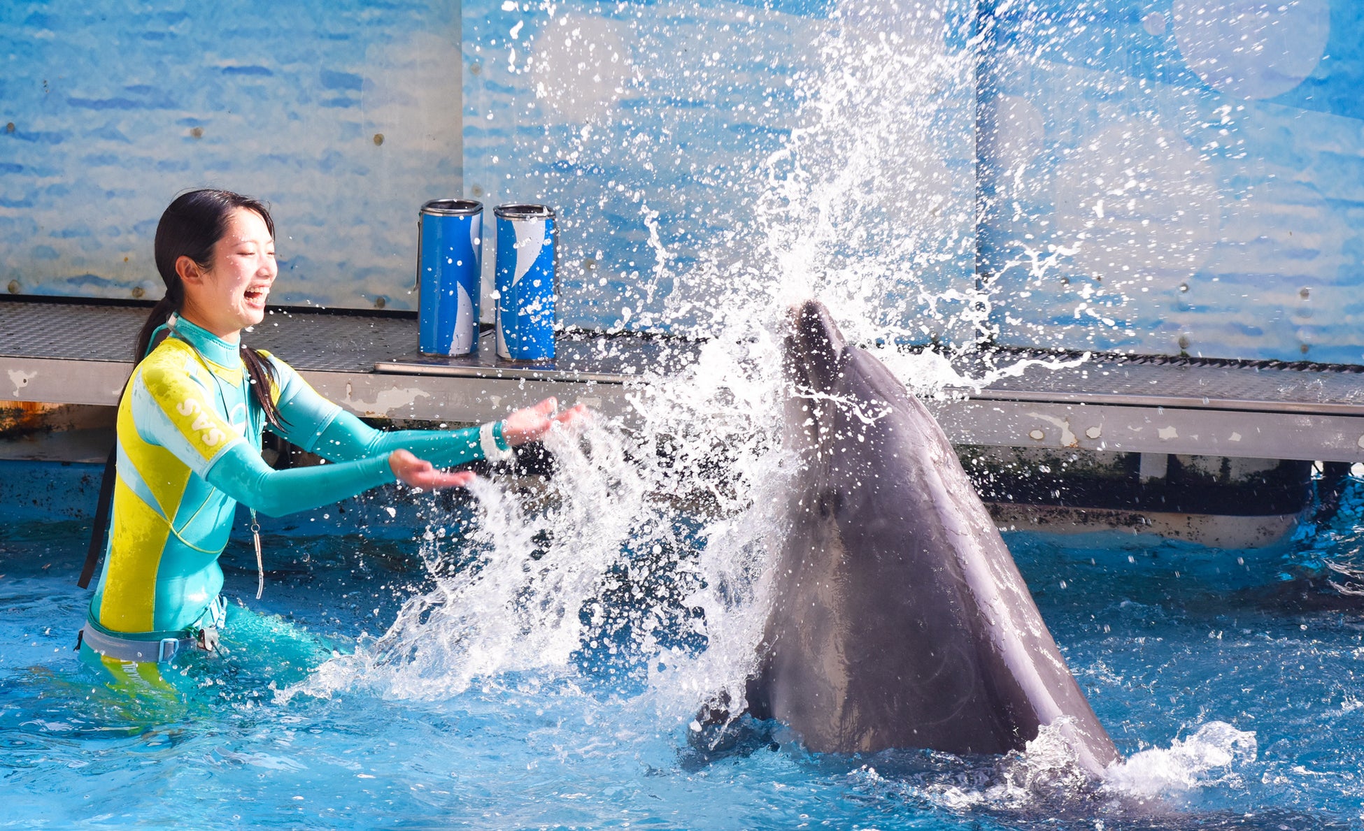 ステージと客席が水でつながるイルカショーは、ダイナミックな水の演出が加わり、客席にたくさんの水しぶきをお届けします。思いっきり水を浴びるCooolな時間をお楽しみください!