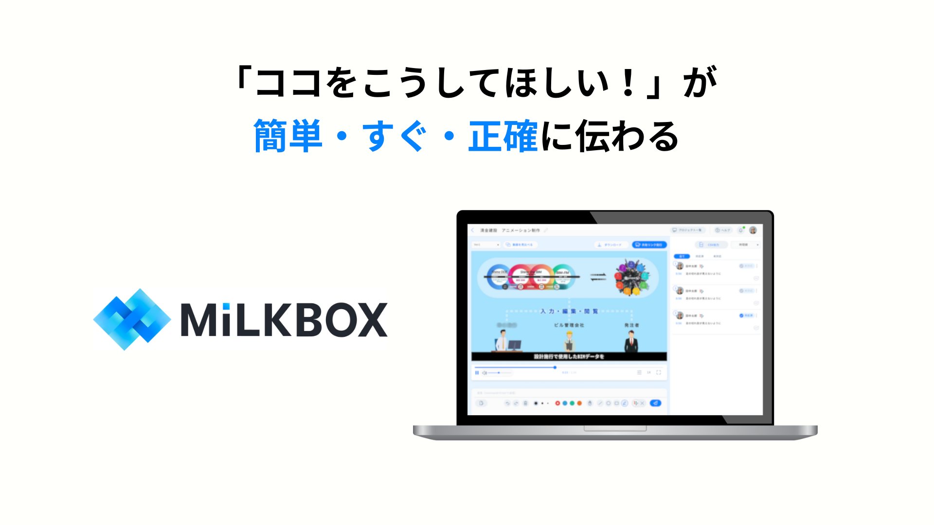 「MiLKBOX(https://milkbox-video.com/)」は、rayoutが開発・運営を行うクリエイティブ制作に特化したコミュニケーションツールです。動画、web、グラフィック制作における、レビューチェック、データ管理・共有、連絡などを一元化し、プロジェクトの制作進行を支援します。