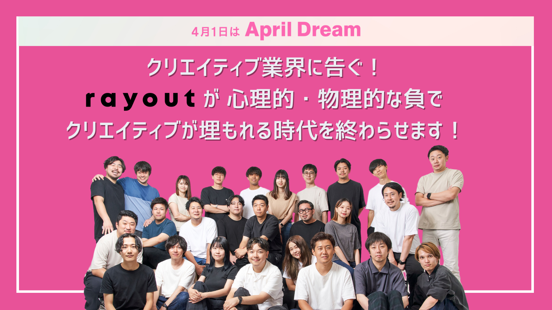 当社は、4月1日を夢を発信する日にしようとするApril Dreamに賛同しています。このプレスリリースはrayout株式会社の夢です。